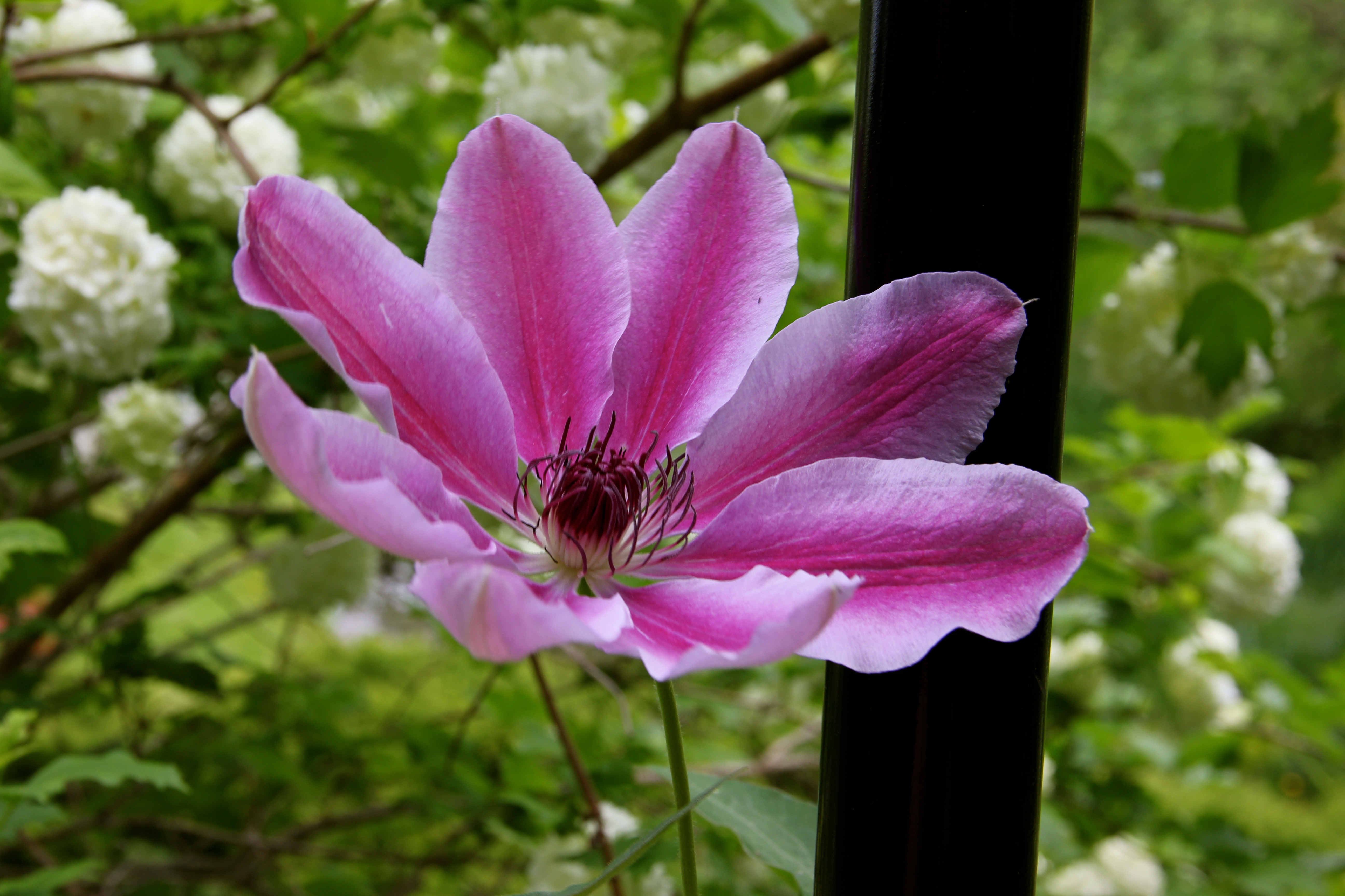 More of the abundant clematis vines are beginning to flower. The blooms are spectacular.