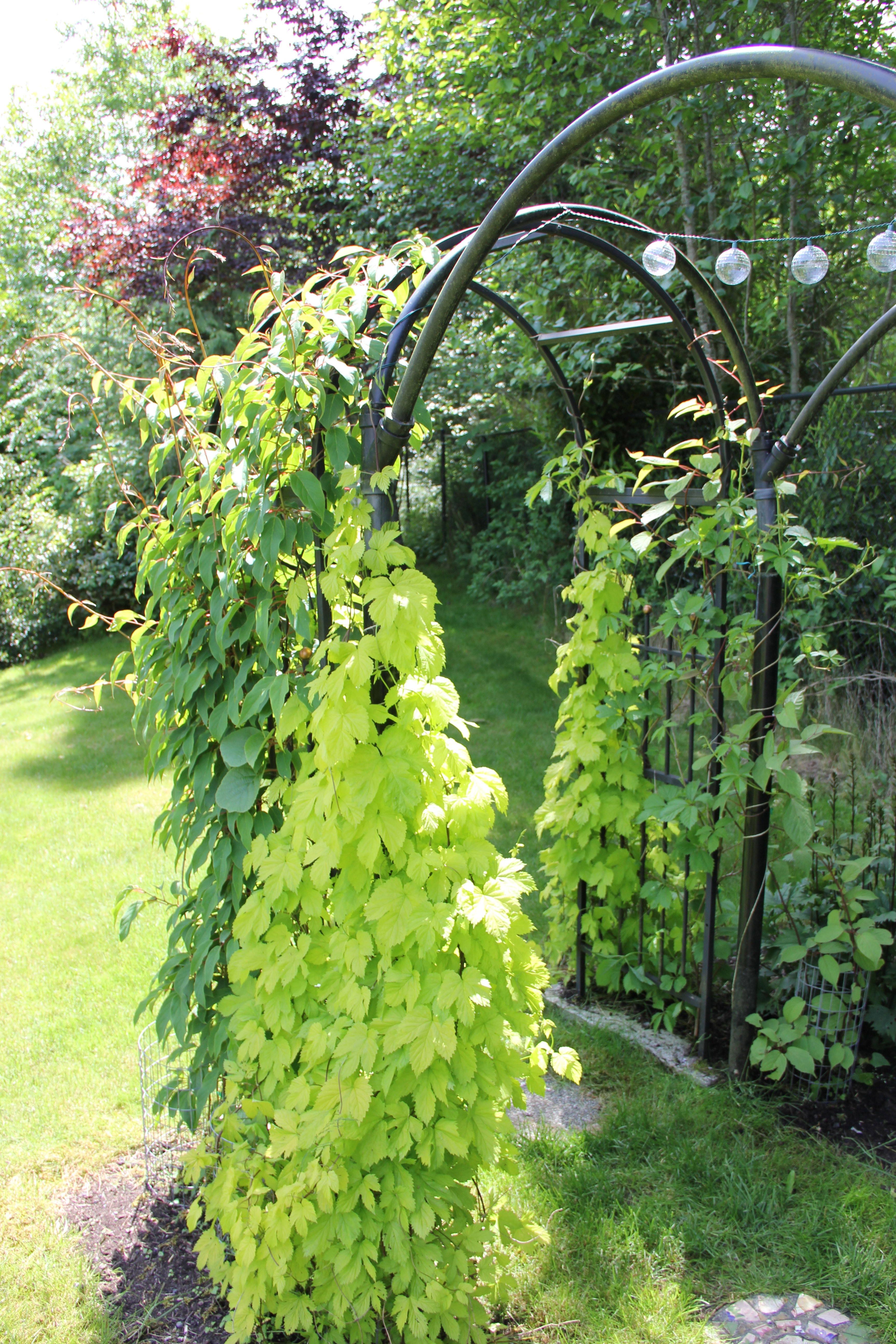 Other plants that have come in rapidly are the golden hop vines. Here is one just a month ago: