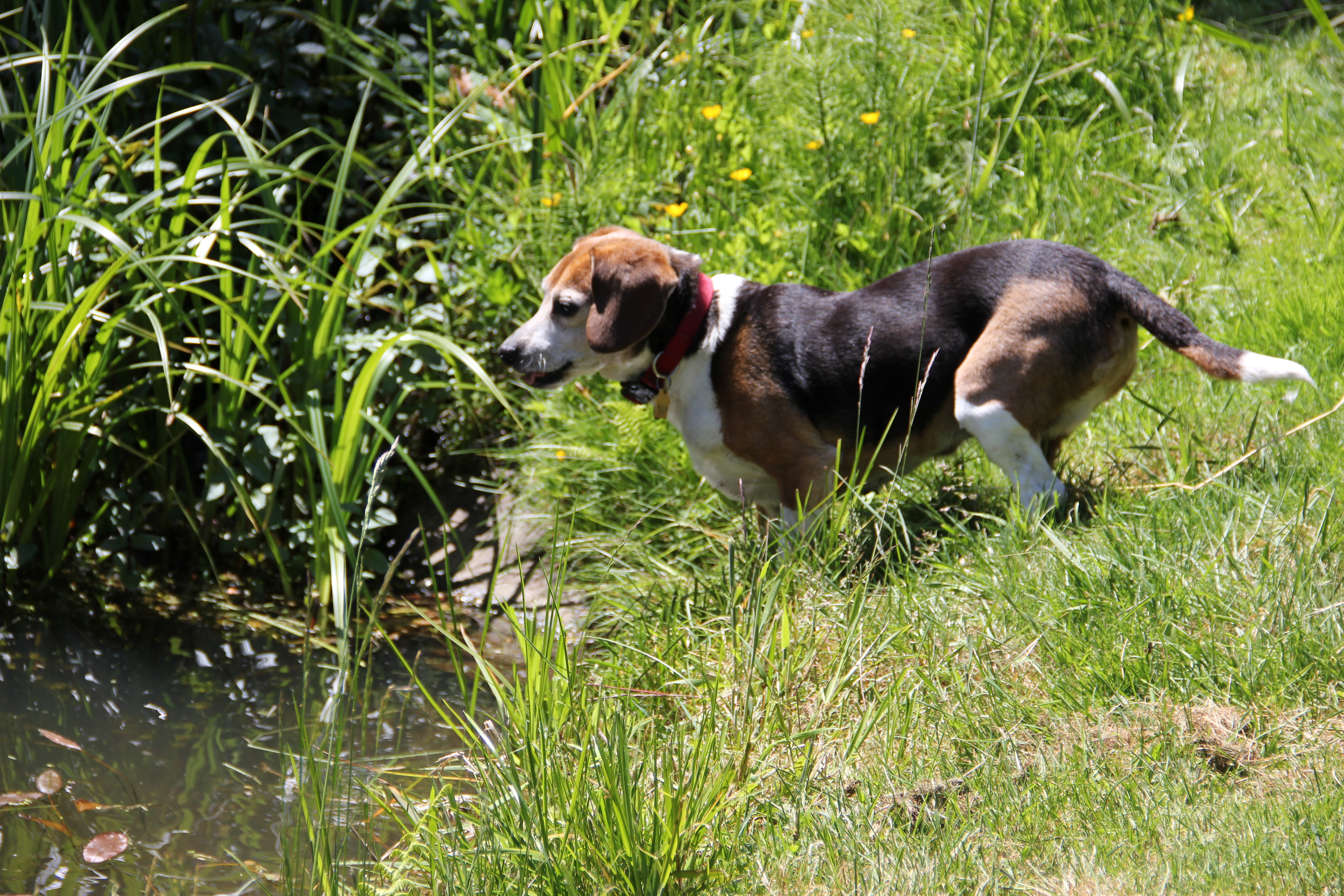 Our beagle has taken up a new hobby: frog hunting! He bounds down to the pond in the morning to find whatever friends he can. He has even waded into the shallows, which is completely against his nature as this dog detests bath time.