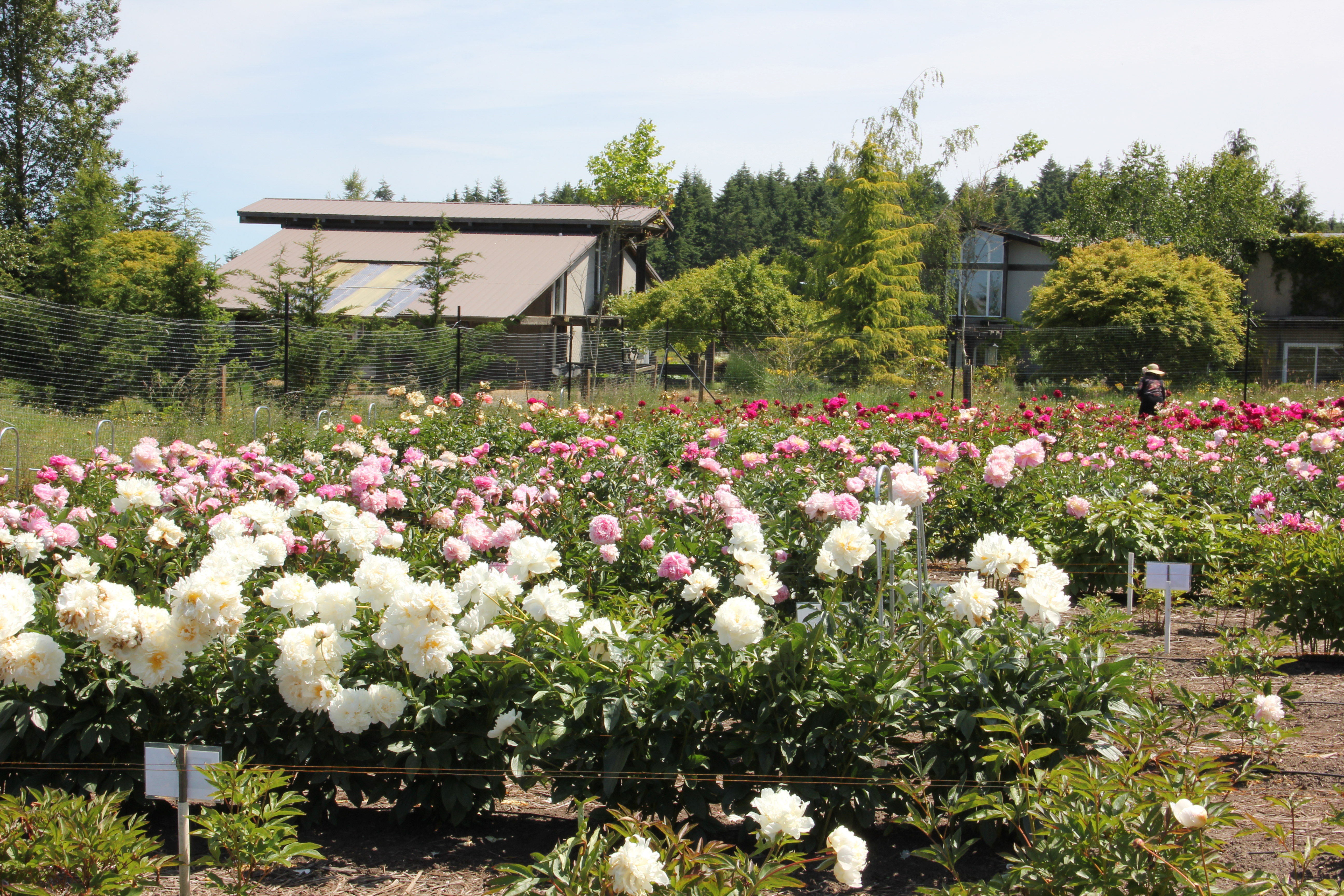 Last weekend’s visit to a local peony farm provided a peek into some unusual varieties, and the coral blossoms of the single or perhaps semi-double form really stood out to me. Here are two of many photos I snapped at Sequim’s Peony Farm: