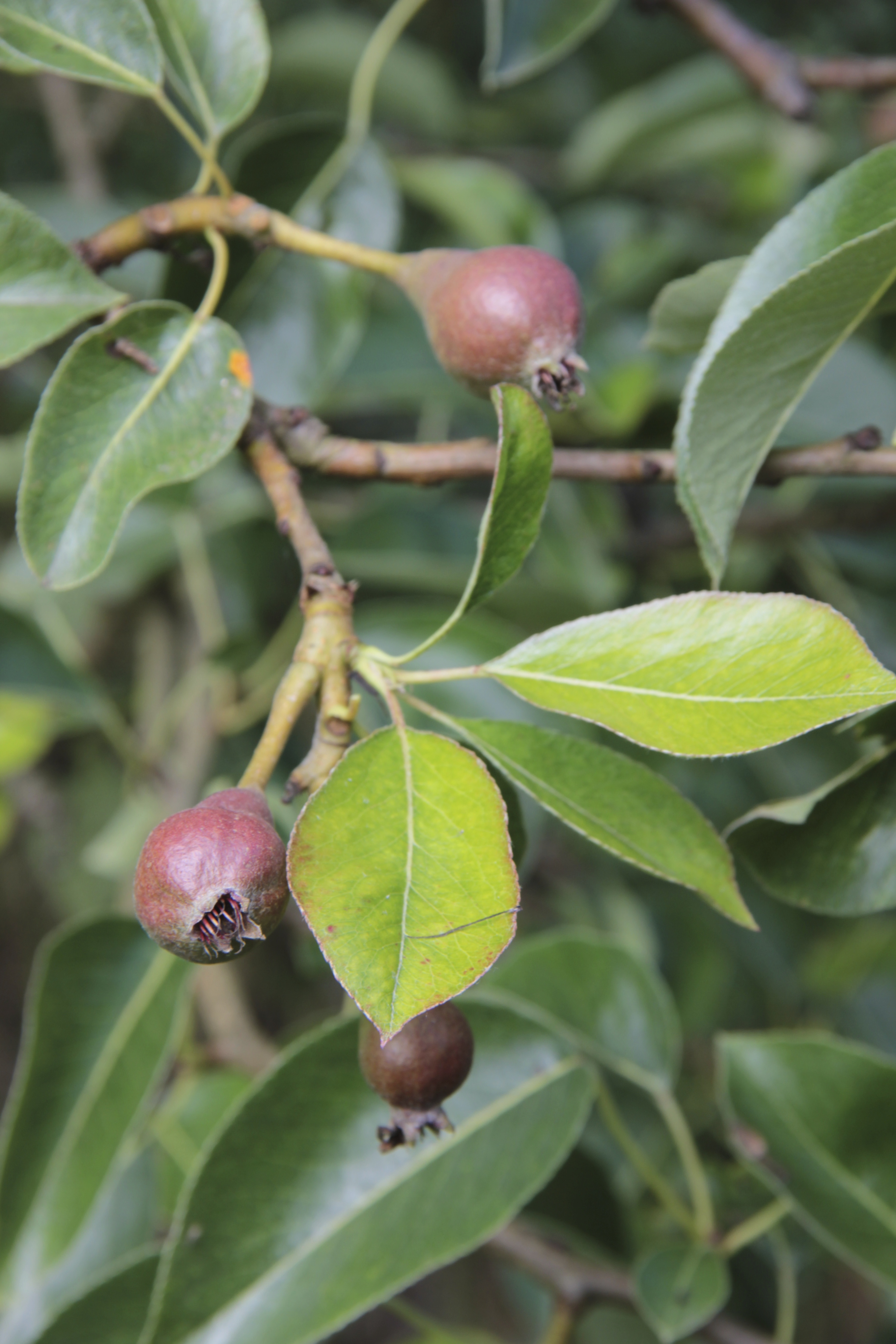 The young pears and apples are doll-size — just a couple of inches long.