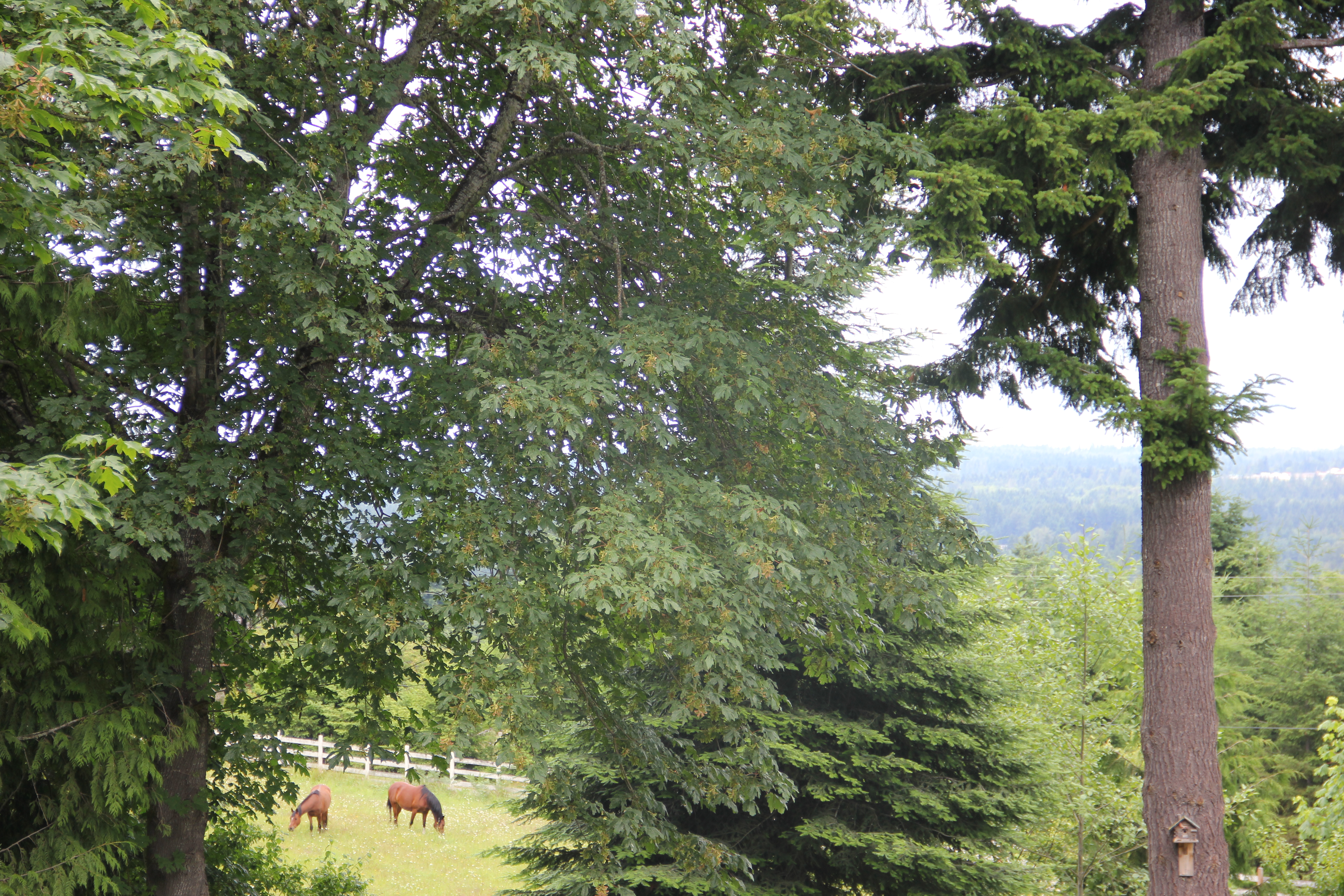 The neighbor’s Arabian horses are wondering what all the excitement is about, while they munch away.
