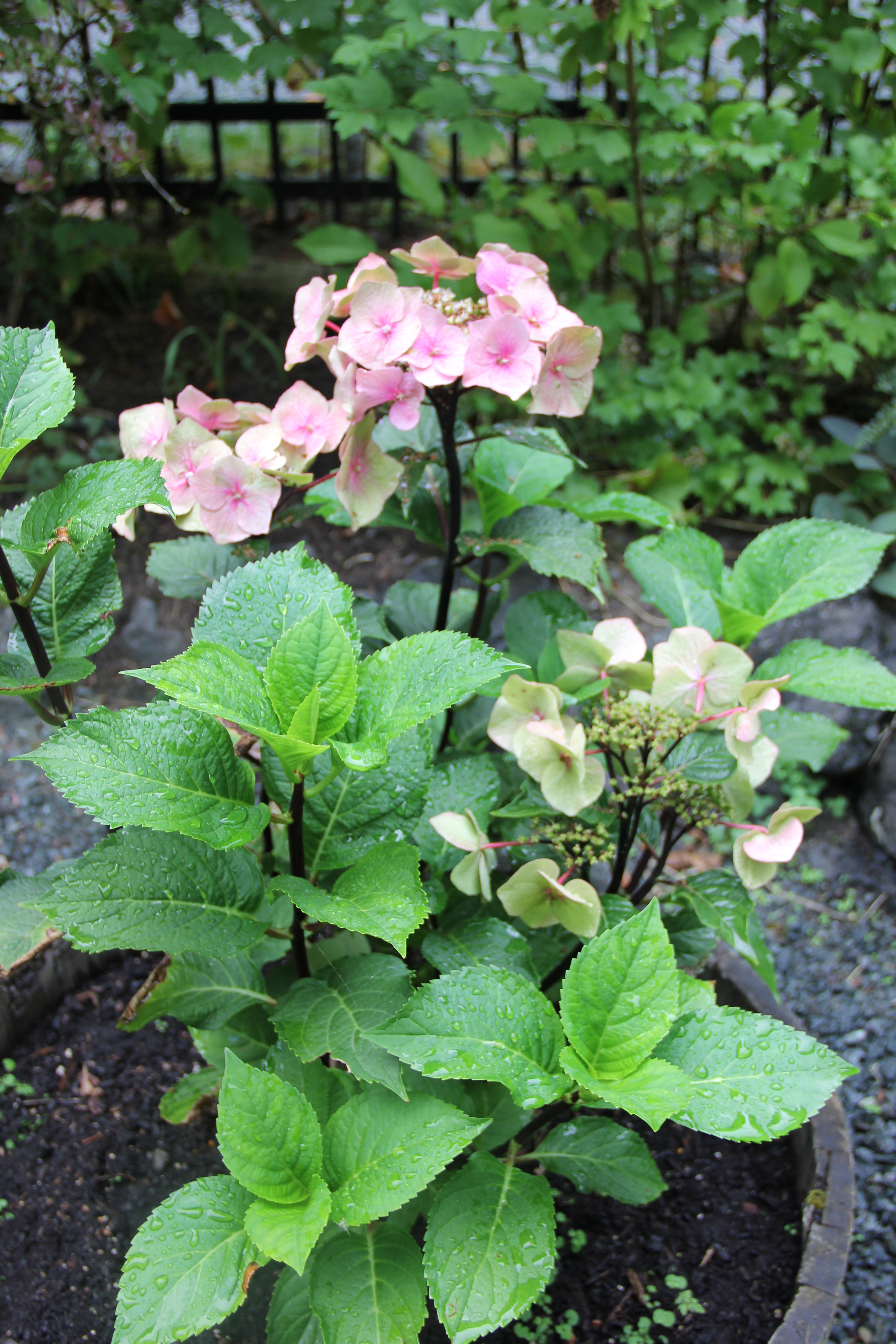 Neither of the large Lavatera plants, also known as mallows, along the gravel stairway on the north side of Coppertop survived to bloom again for us, so we’ve dug both out in the last couple of months. These had been planted probably a decade ago in half barrels, and the soil required the addition of our rich compost. One of the barrels now holds a young lacecap hydrangea which has flourished.