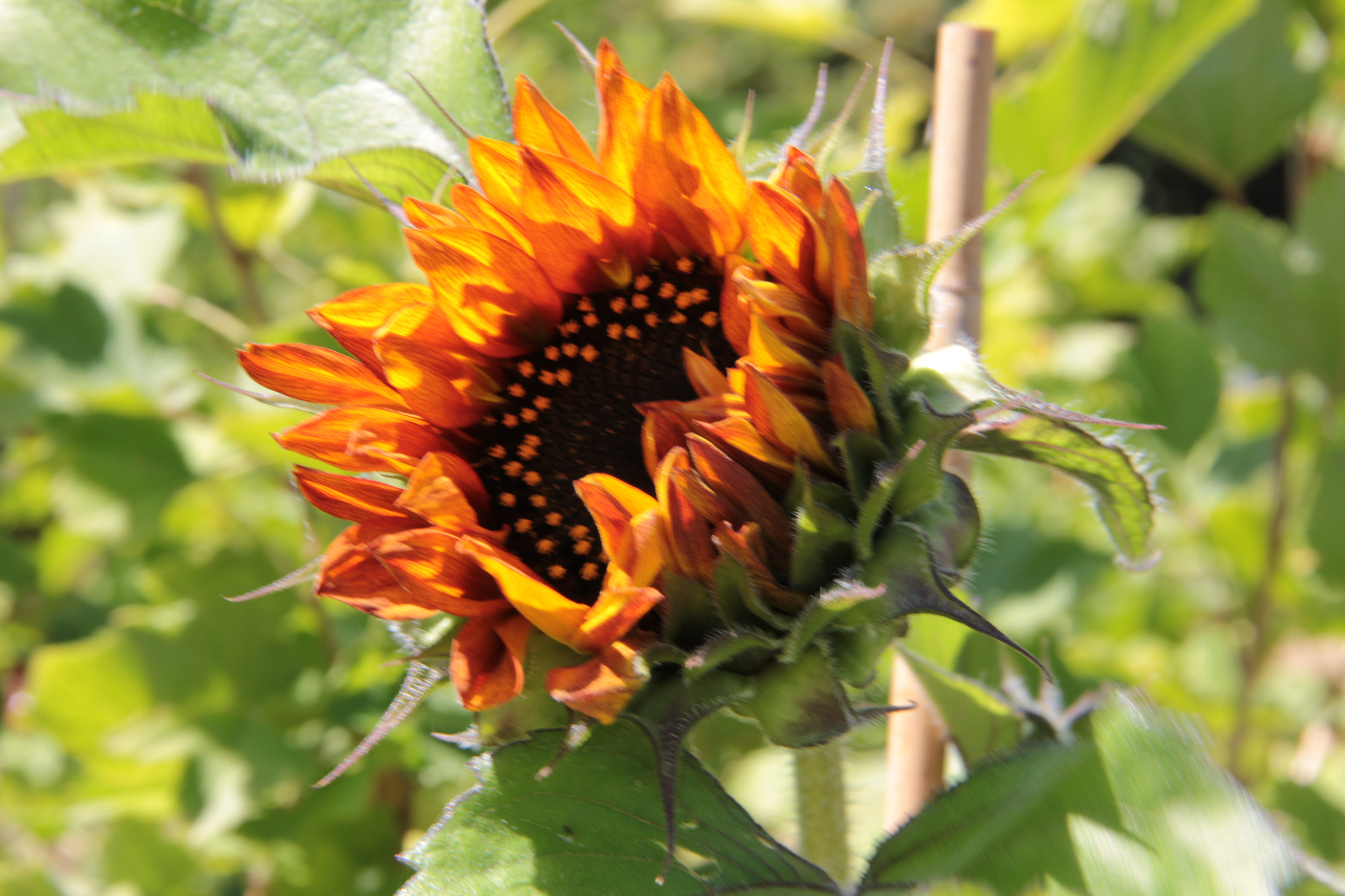 - Spotted first blooming sunflower in one of four plots of sunflowers. early August