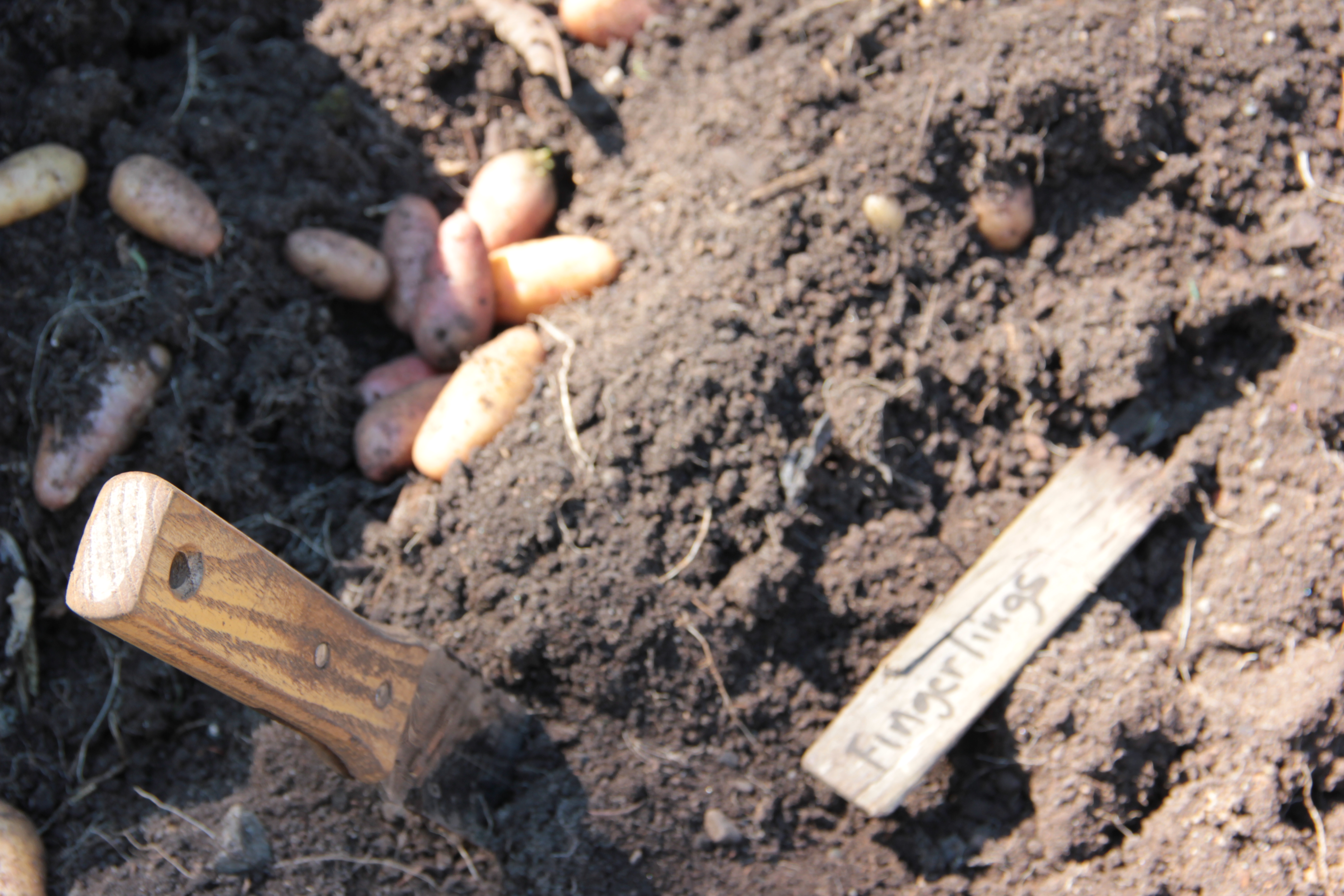 That was a wonderful place. But I digress! Coppertop potatoes came up easily, as did this old marker which was made by the previous owners and had been buried.