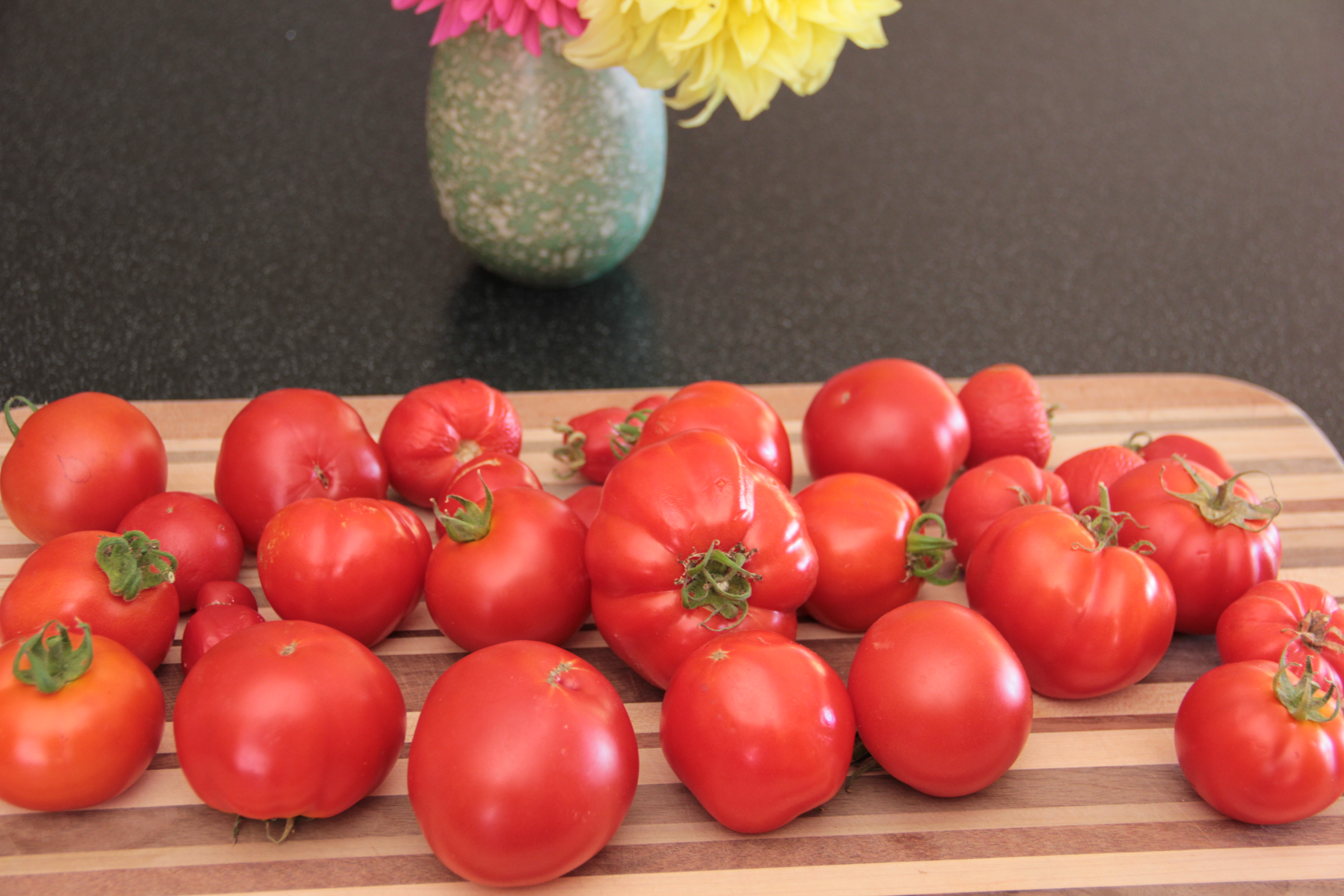 I’m thankful for the bountiful, colorful goodies on my counter today fresh from the garden. Yep, that’s a giant jalapeño.