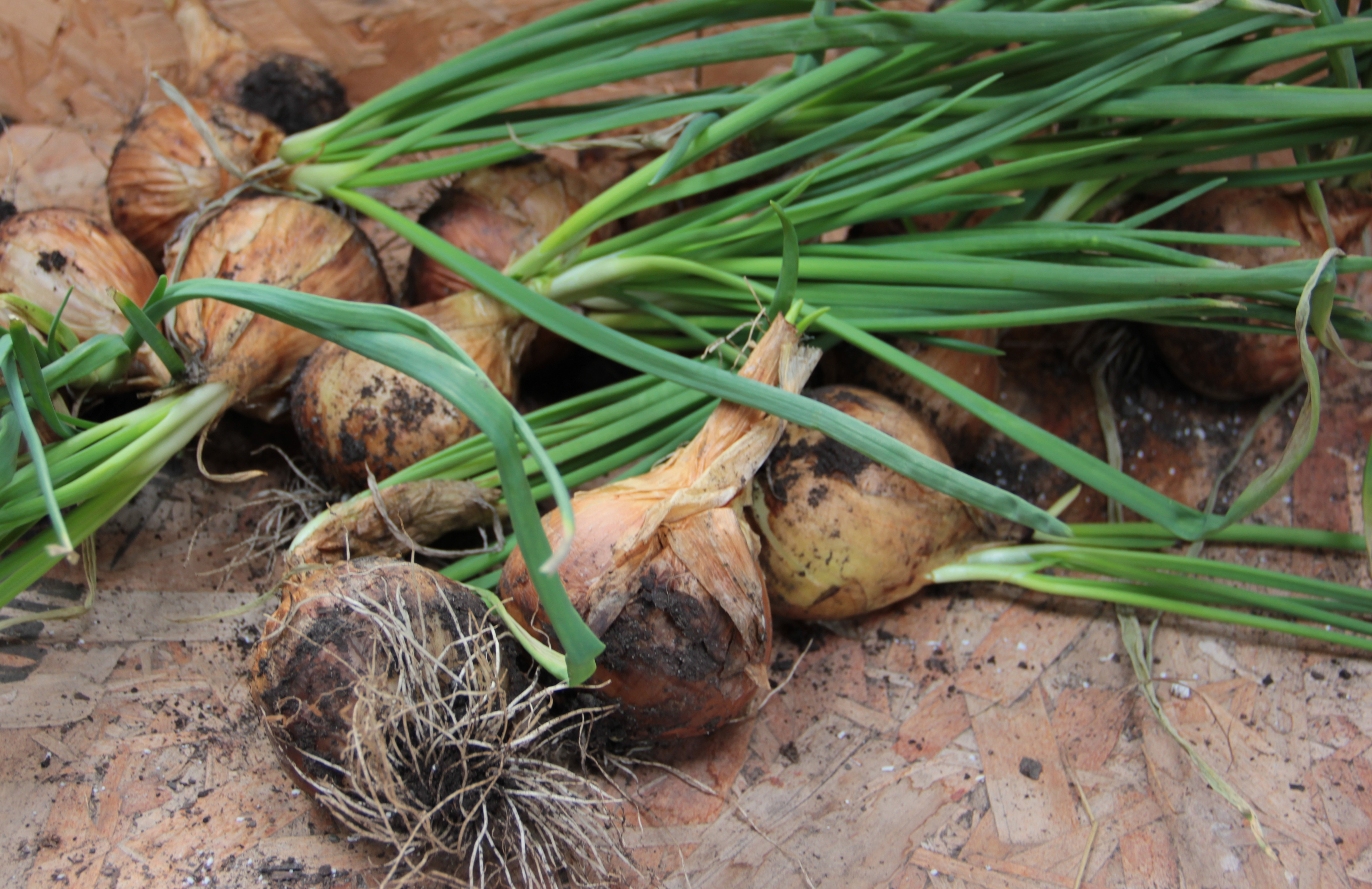 The daunting fact is that my onion bed still has so much remaining to harvest. The youngest onions are a mass near the top of the photo and all could use a good weeding. Not bad results for an initial $4 investment. Time to find those goggles again and get to work chopping and freezing.