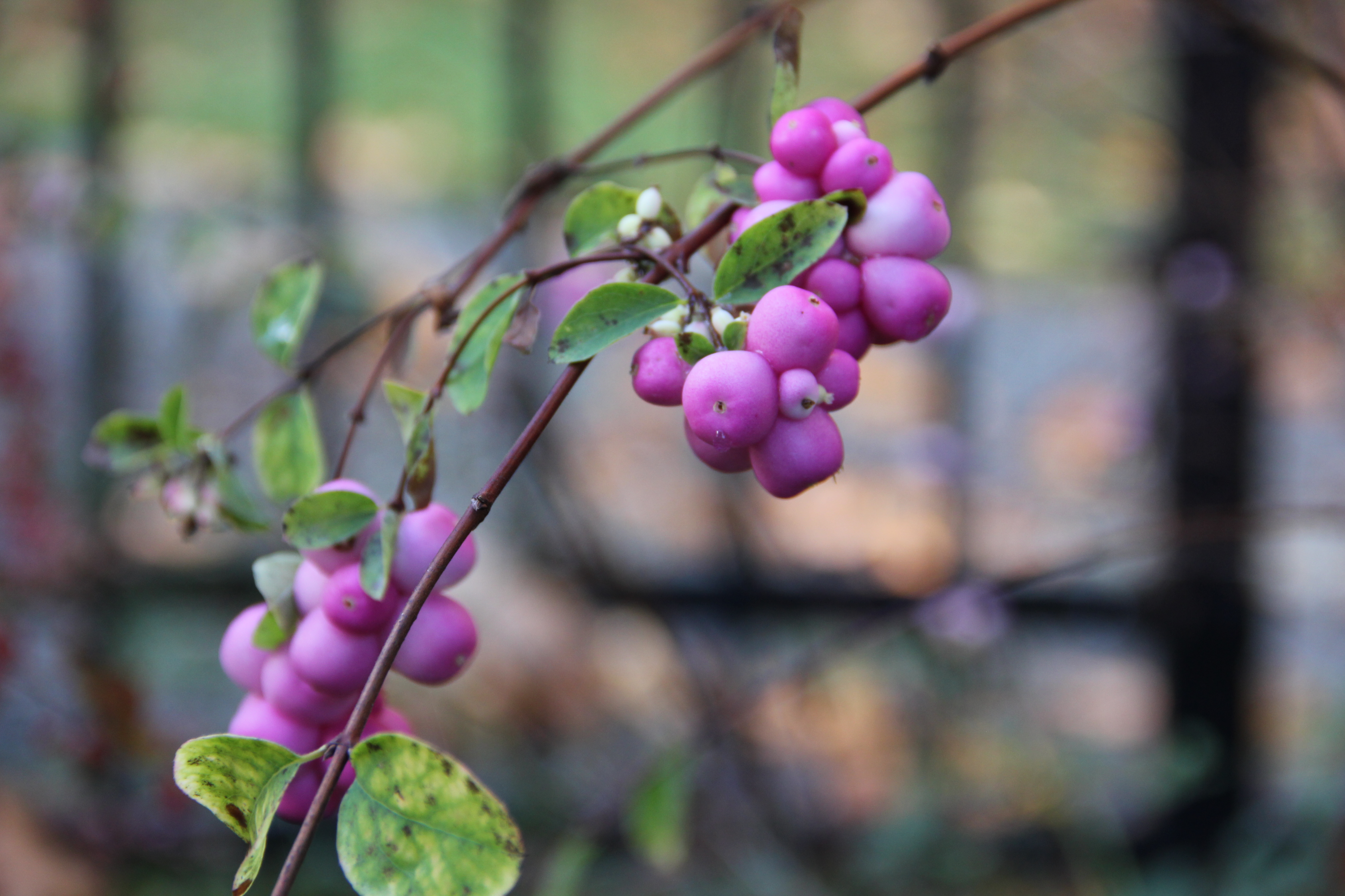 The young bush itself is just a mass of sticks, having dropped almost all of its leaves already. The berries may last through January, but we’ll see what hard frosts and snow bring.