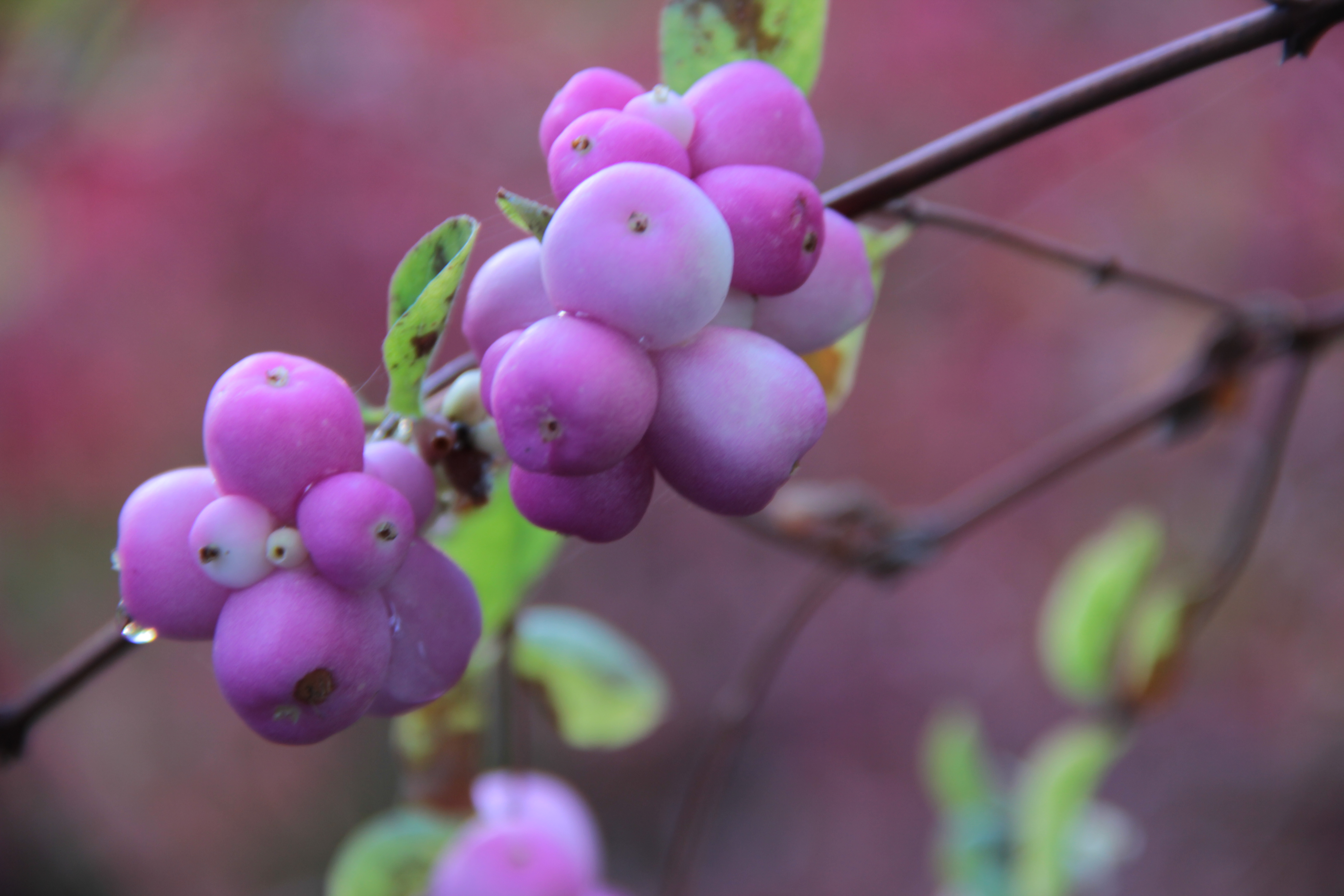 A shrub that’s new to me is this snowberry bush, Symphoricarpos. This rosy variety with its gorgeous, pearly, puffy berries just begs to spill from winter bridal bouquets. I’m loving the branches in tiny vases indoors as well.