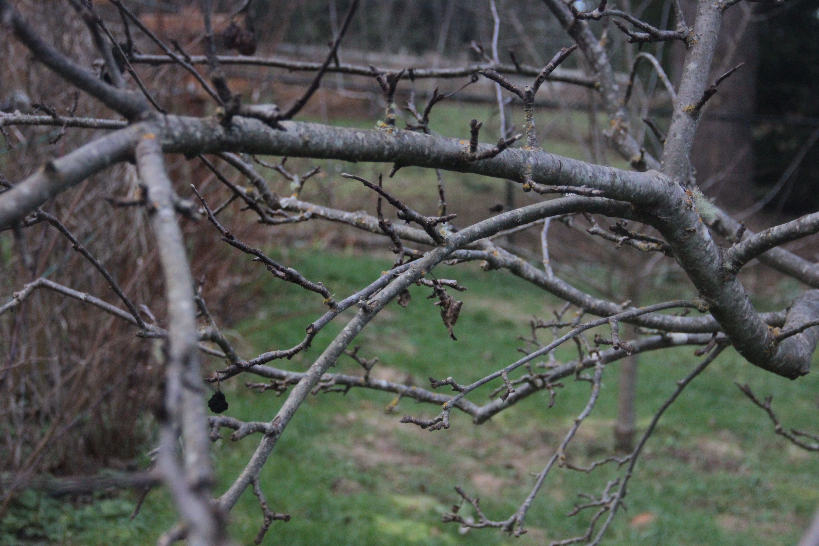 As I examine the structure of our fruit trees — four apple, two pear, one cherry, and one plum — I appreciate the way some have been previously pruned into large, open vase shapes. Others grow in a central leader shape, especially the tallest tree, our sour cherry. Last year during our first spring at Coppertop we did not prune these trees. We were hesitant to touch them, actually. However, if we hope to continue to harvest generous amounts of fruit and to help the trees mature gracefully, we’ll need to prune. Apple trees can live well over 100 years if taken care of properly! The fruit spurs on our apple trees have me excited already for our 2015 harvest.