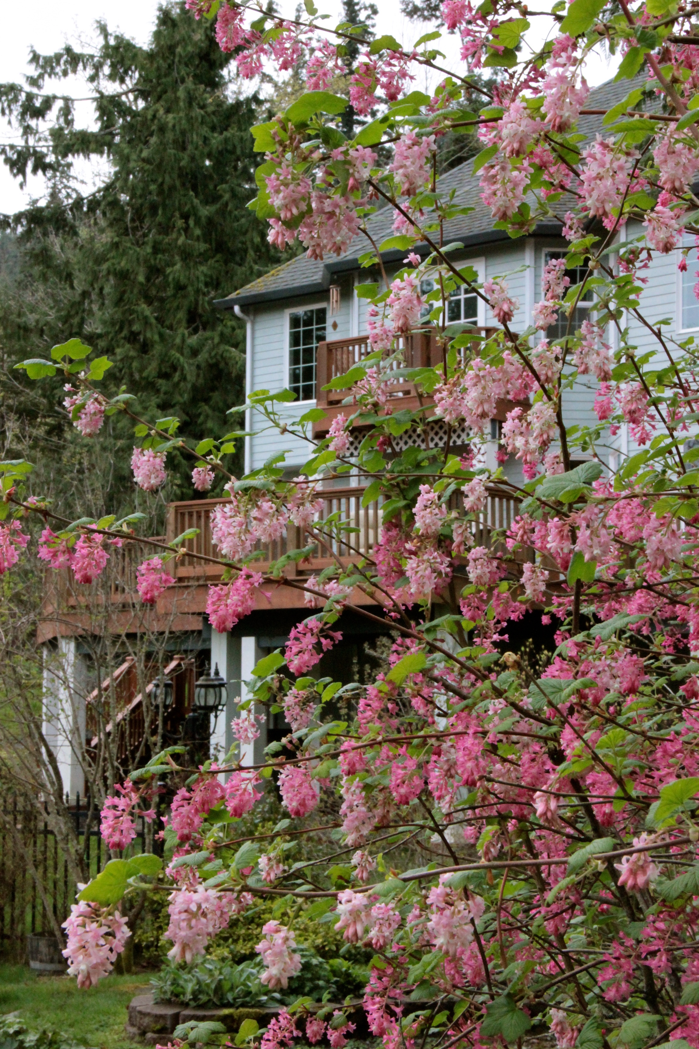 Early April has brought the Ribes sanguineum – red flowering currant – into full bloom. Its fruity, spicy fragrance is impossible to resist, and hummingbirds have flocked to these bushes.