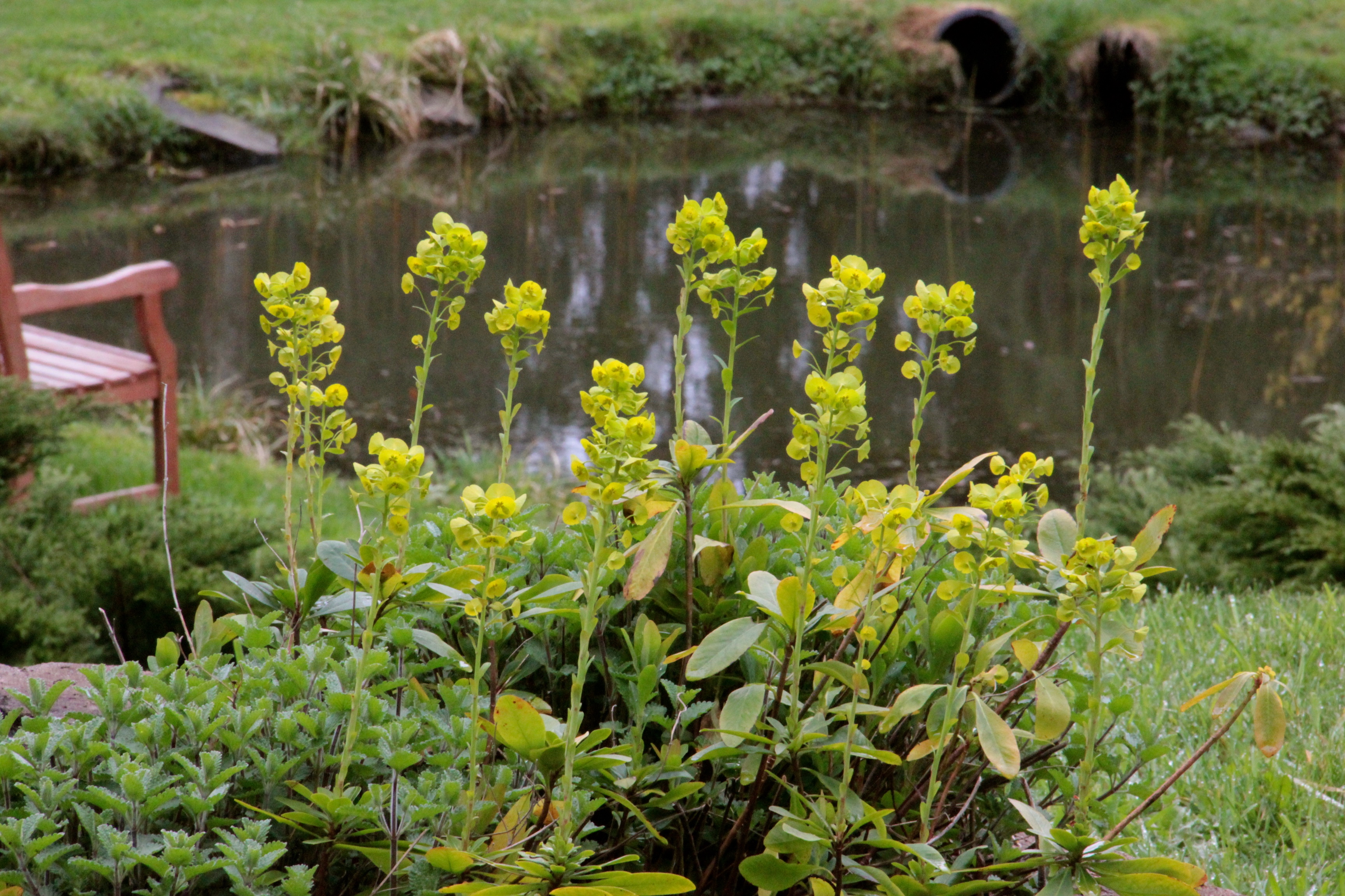 Other areas of Coppertop where perennials stand out during this Holy Week leading up to Easter are the Euphorbia, Brunnera, and Pulmonaria.