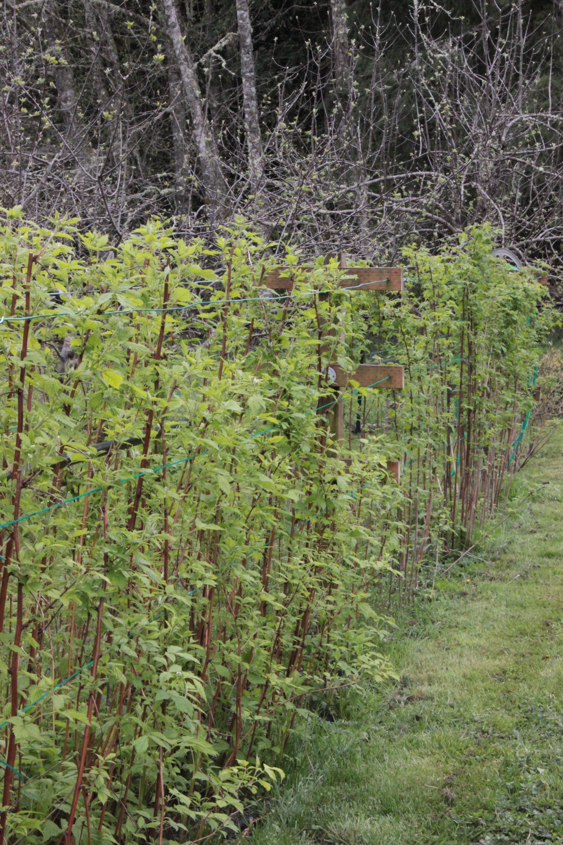 The raspberry hedge has greened up and promises another yummy harvest. I spent one day last week pruning it and cutting away all spent floricanes.
