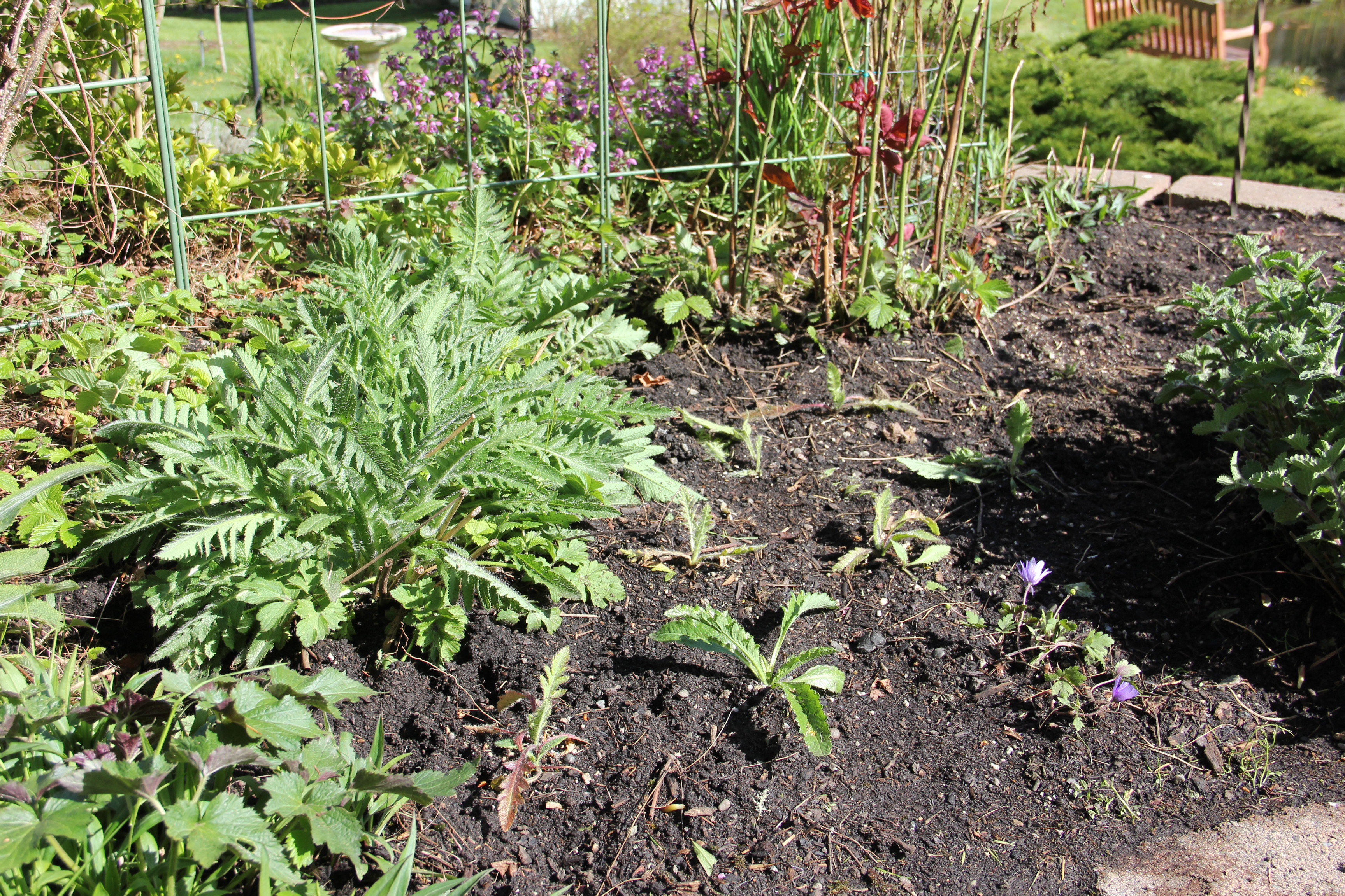 Nearby, the delphinium have begun to take off. Soon I’ll be inserting dozens of stakes into these beds and the ones up by the hot tub.