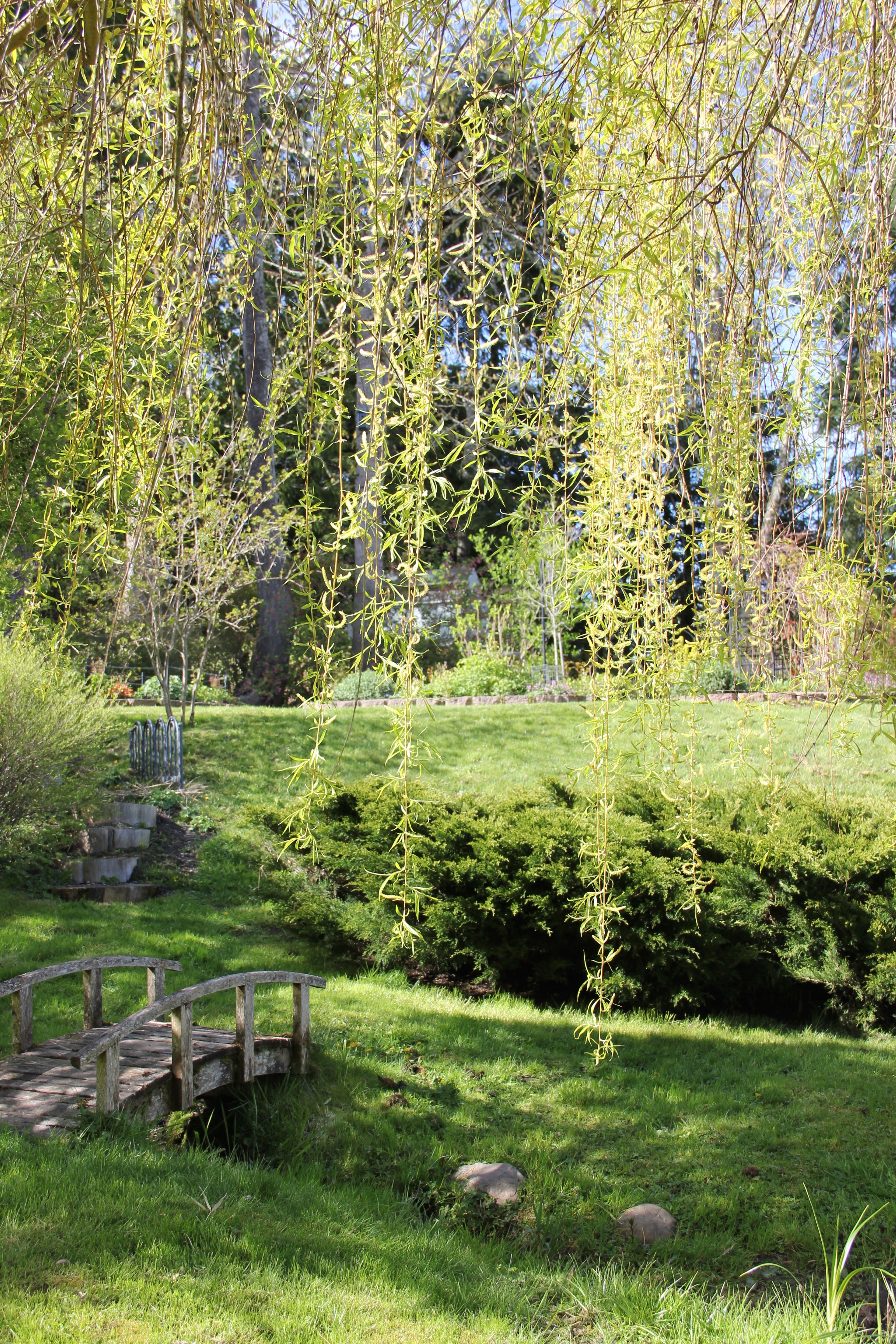 Mid-morning, I took a break from planting young seedlings into the veggie garden’s raised beds and relaxed under the willow in the cool, dappled, spring sun.