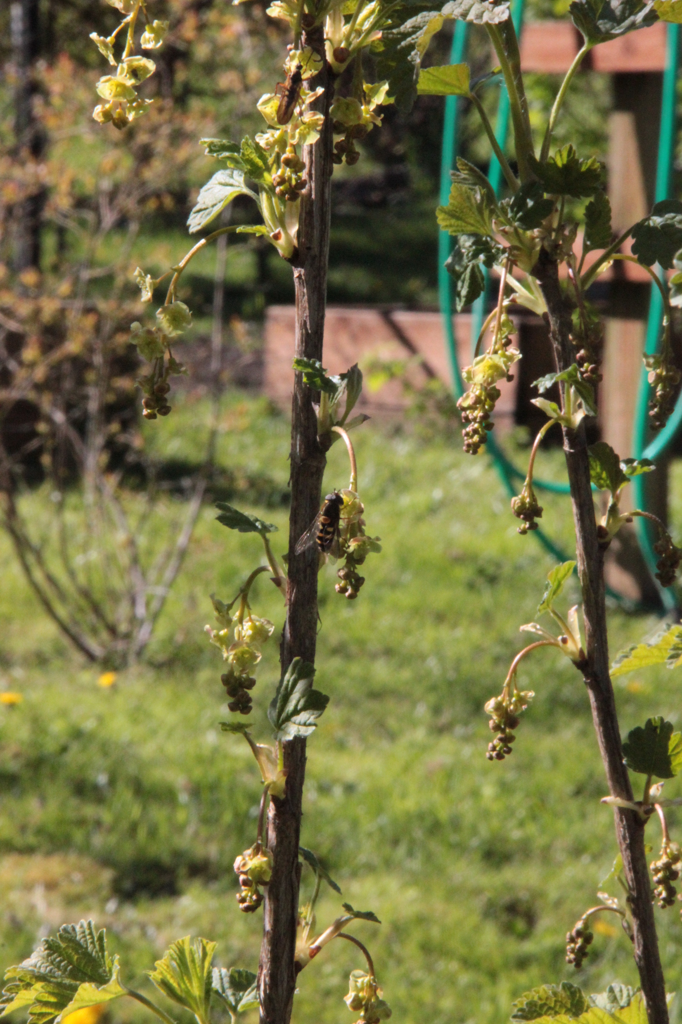 - Another banner harvest promised by the tight blooms (and the bees!) on six currant bushes. mid April