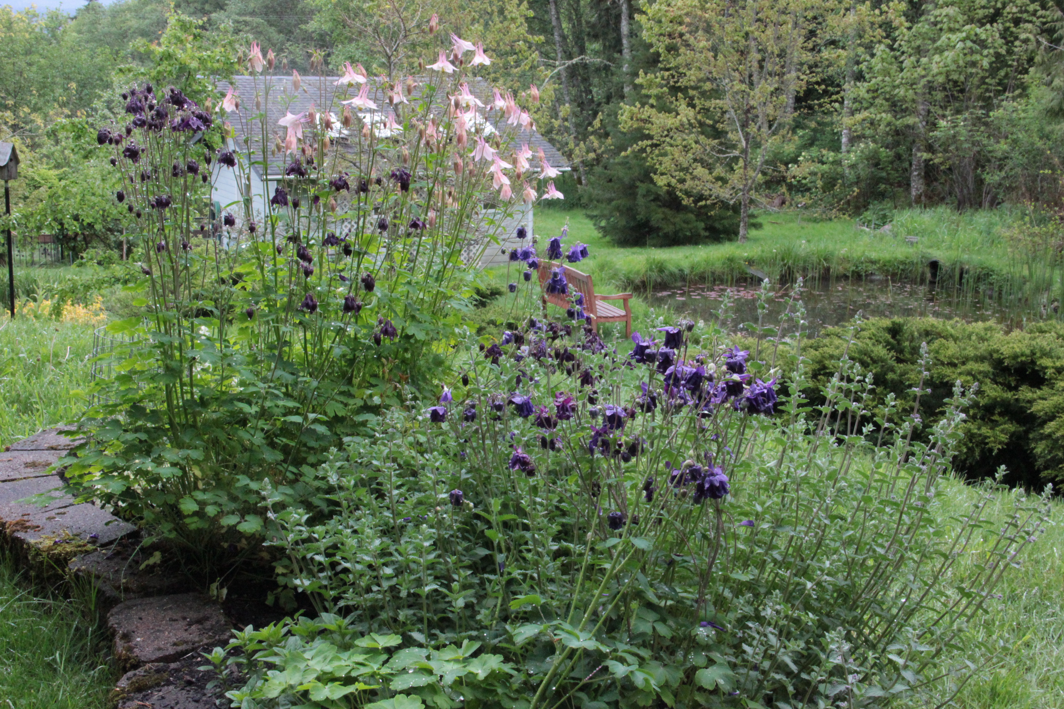 Many varieties of columbine or Aquilegia are in beautiful full bloom in the perennial beds.