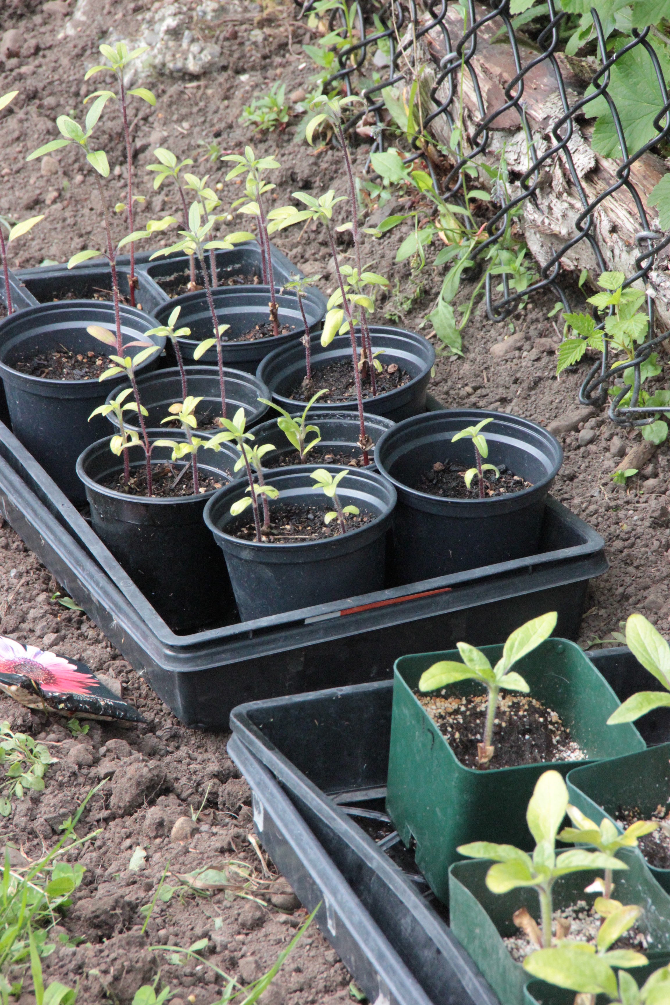 Some of my favorite potted plants last year were heliotrope with their cherry pie fragrance. They are grown as annuals here since they are such tender perennials. One sister and I purchased heliotrope seed at Butchart Gardens in BC last August. The heliotrope seedlings have taken forever to get to just this size. When I put eight small pots outside the greenhouse to harden them off, slugs ate four pots worth in just one night. Not sure they’ll make it to flowering stage before first frost.