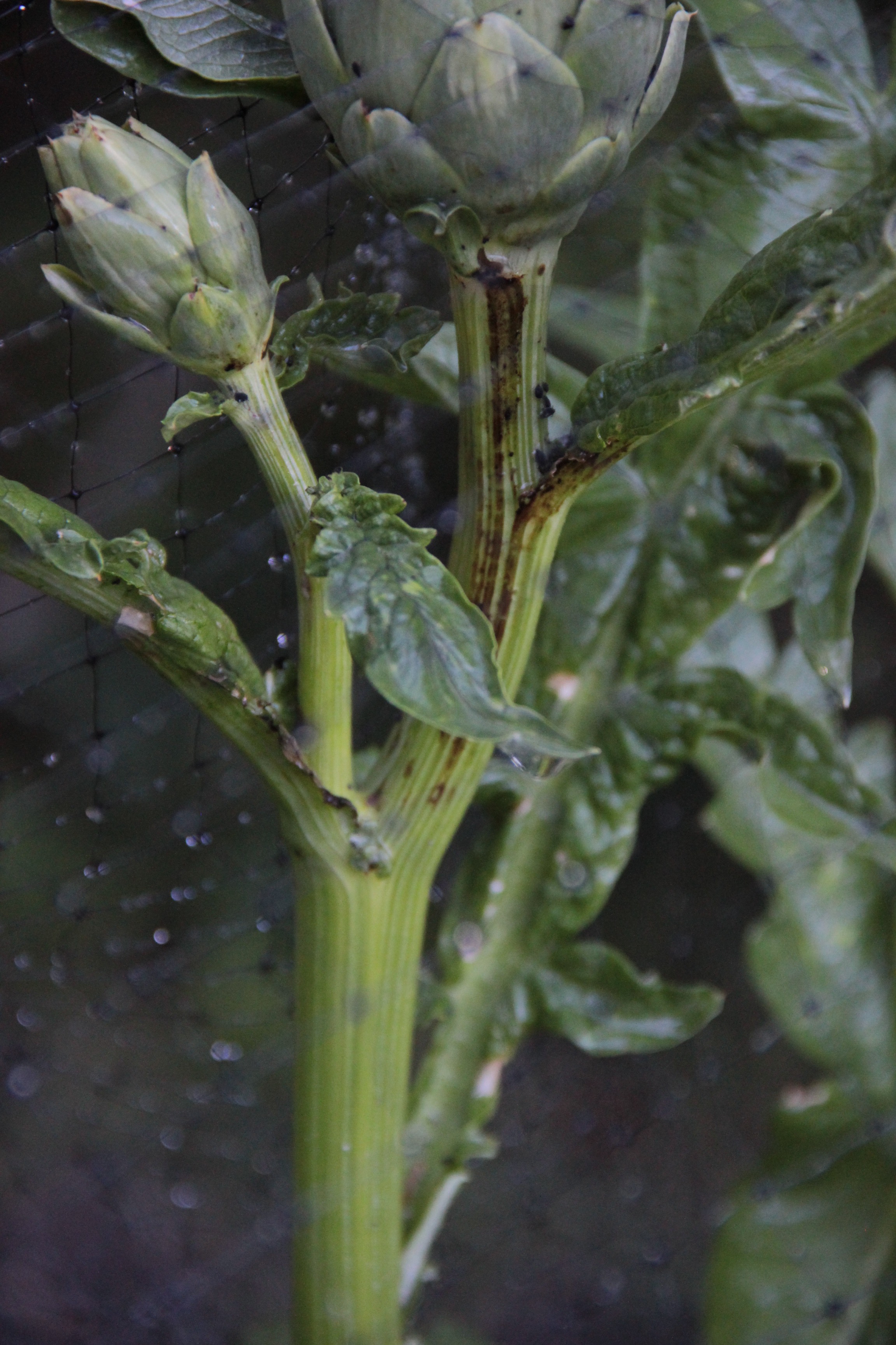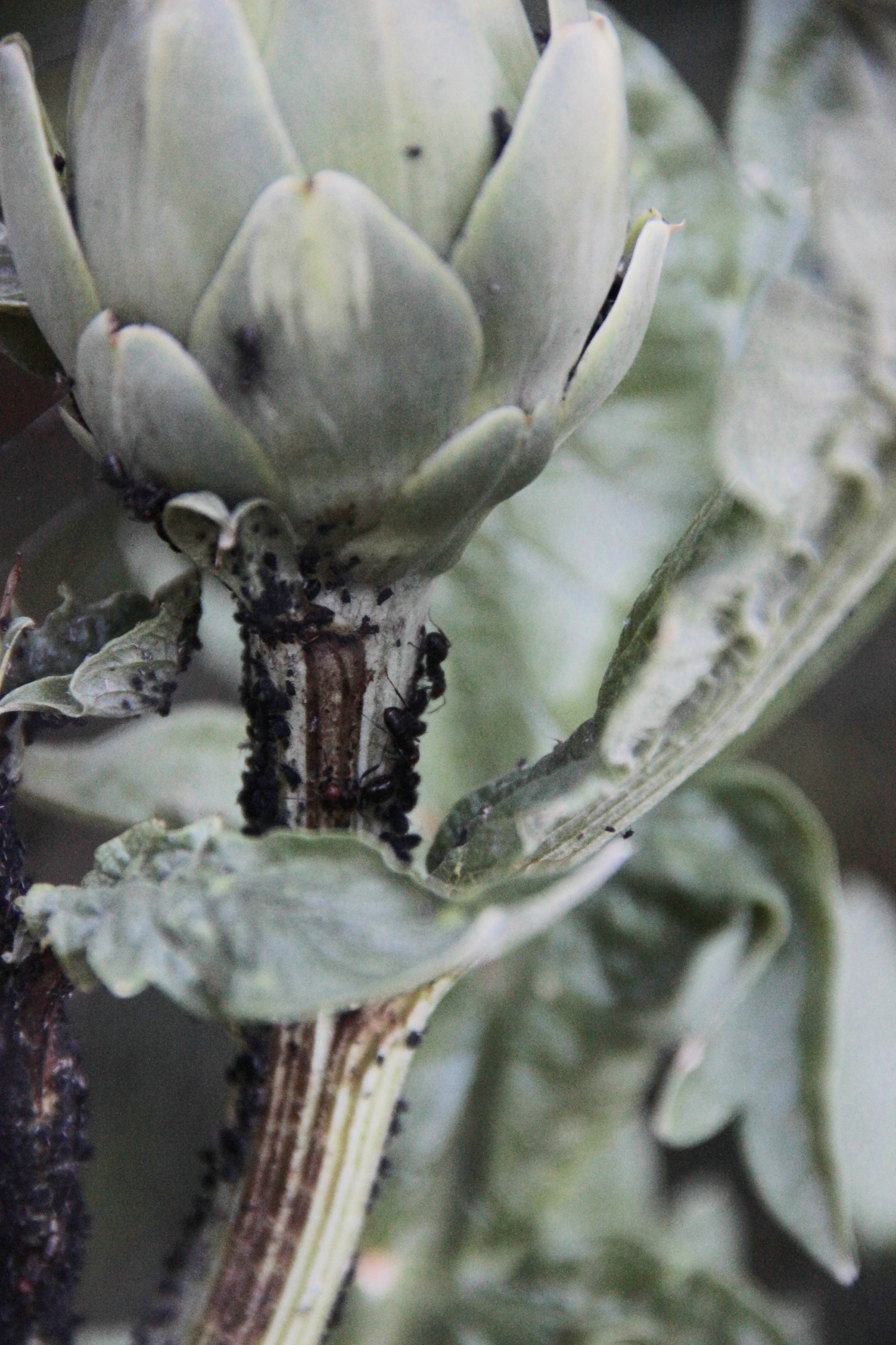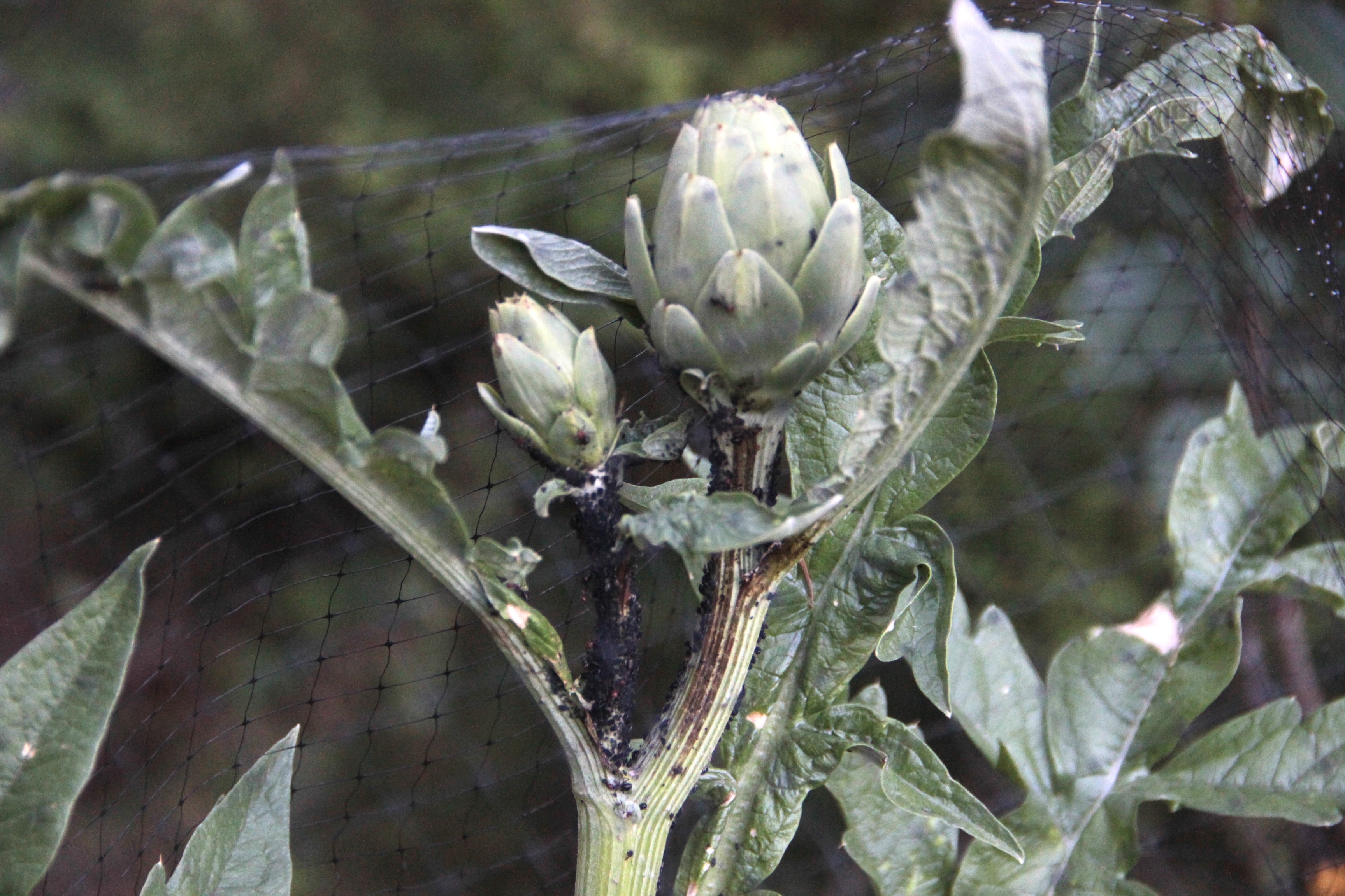 A trusted source informed me that it’s fine to let the artichoke buds go to flower their first year to gather strength for the plant for future years’ harvests, a bit like our asparagus. Good thing, since after seeing the aphids suck the life out of the plants I may have lost my taste for artichokes.
