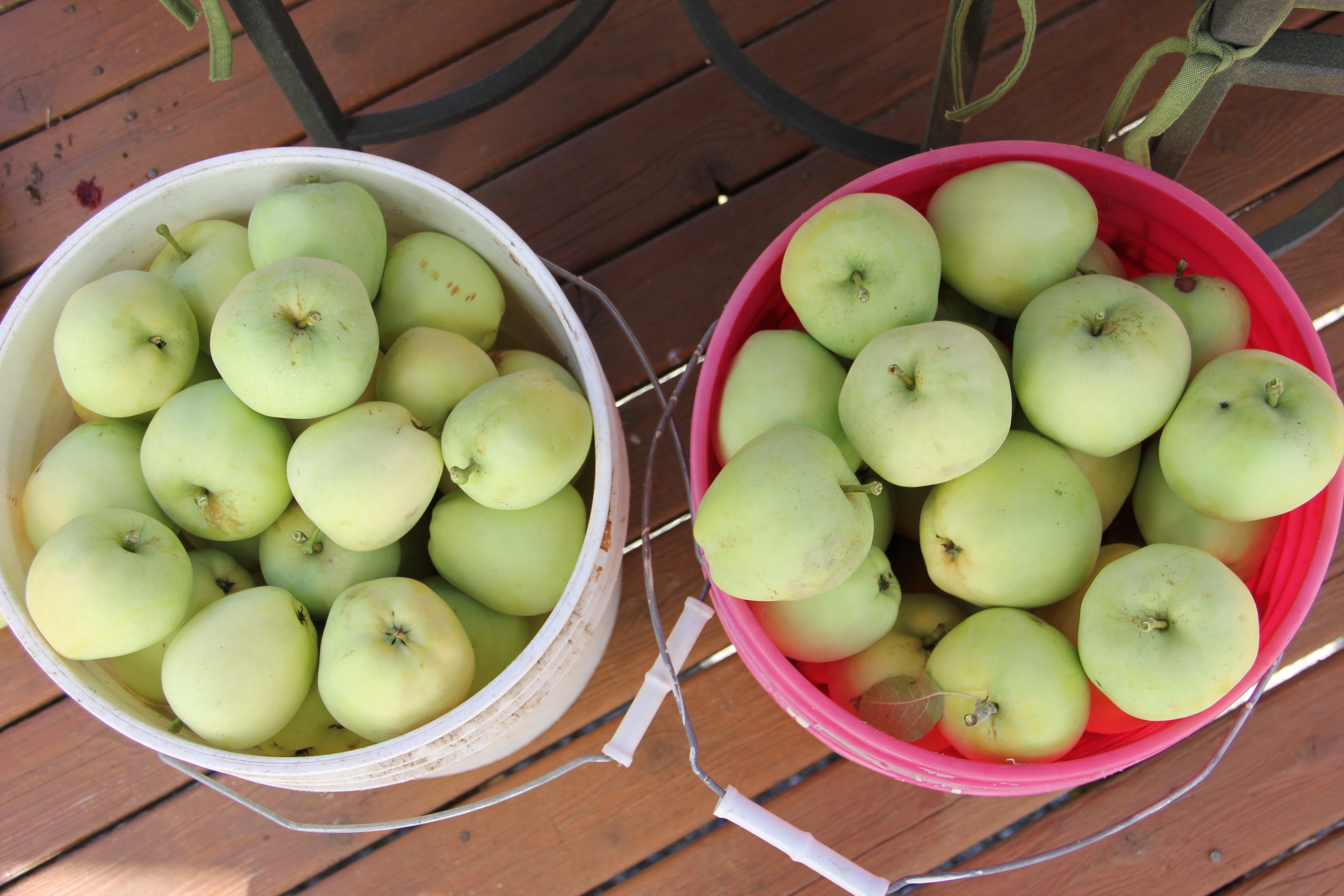 In the past week we’ve given up putting apples in my harvest basket and have instead filled FIVE huge buckets of beautiful apples.