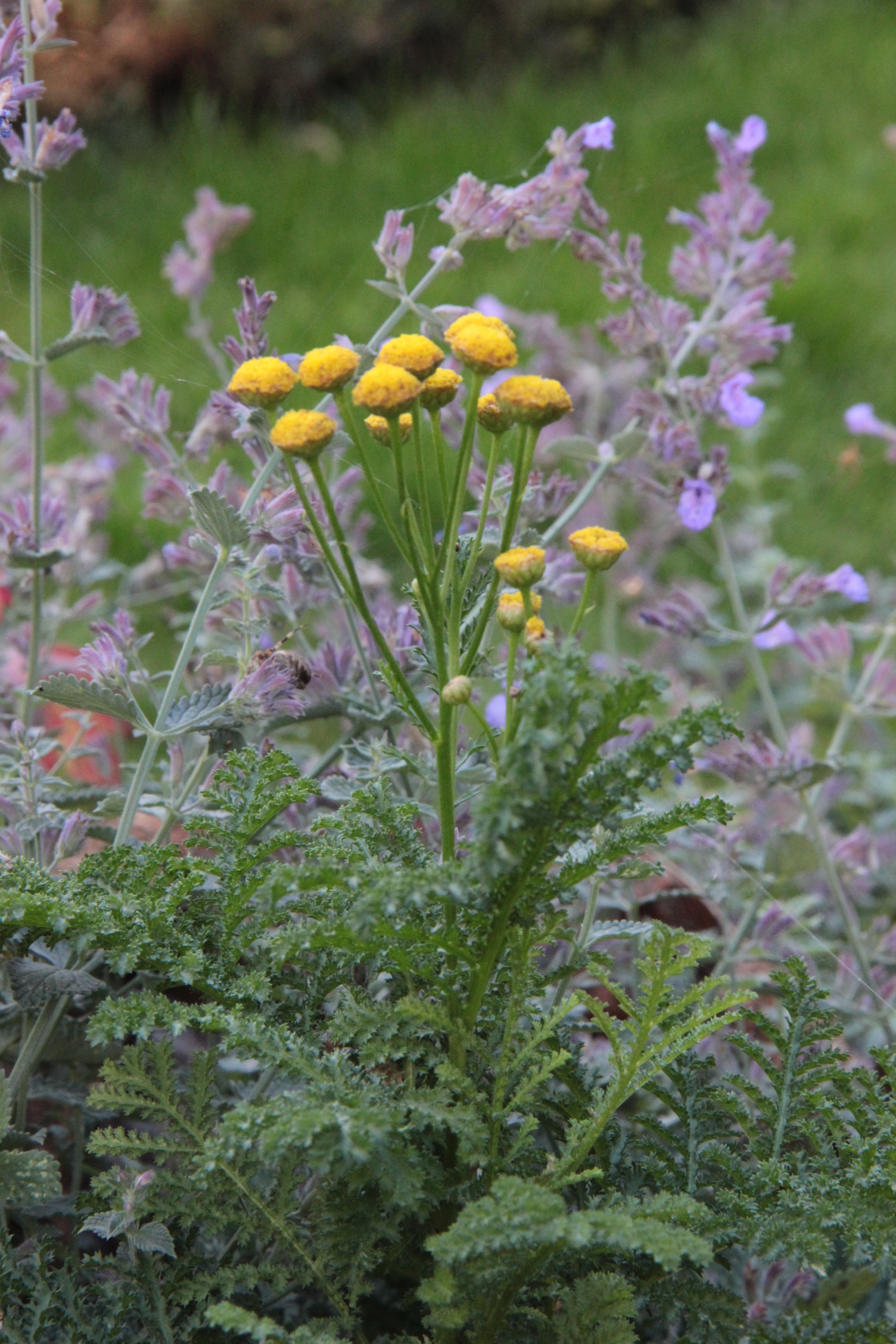 1. Your pictures make me want to find some seeds to strew in my garden. I’ve been growing another kind of tansy, purple tansy (Phacelia tanacetifolia), which is powerfully attractive to honey bees. It grows best in full sun. The flowers are a pretty, pale blueish mauve, and the seed heads are a beautiful shape, reminding me of an architectural volute. You can use Phacelia as a cover crop, too. I filled a container with Phacelia and Alyssum and it looked beautiful, although it would have been positively stunning if it had had full sun and everything had grown straight and full.