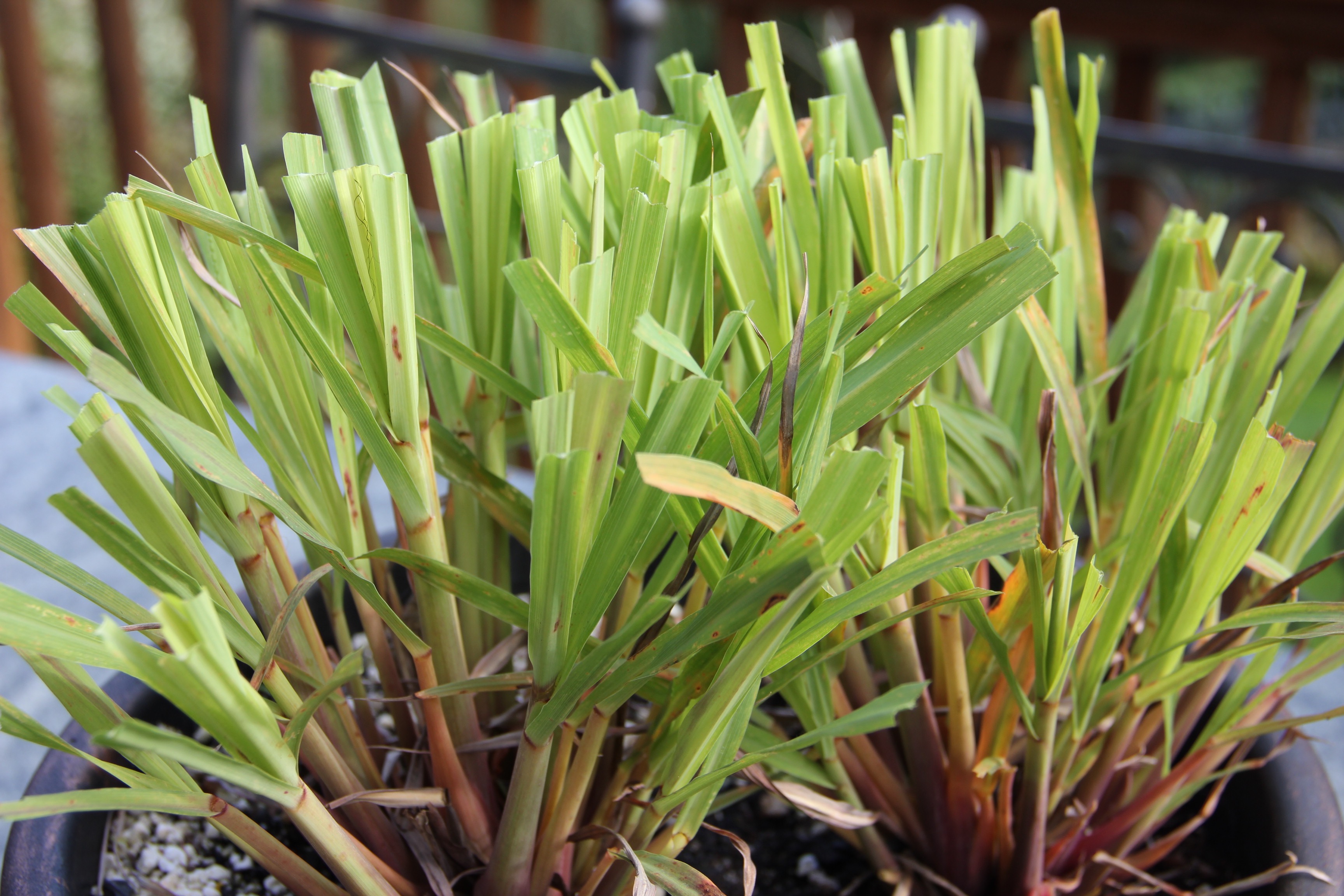 Refreshing. Aromatic. Citrusy. These are a few ways to describe one of my favorite culinary herbs, lemongrass or Cymbopogon citratus. One might think it would be a challenge to cultivate lemongrass in mountainside gardens in our cool northern climate. I’ve been learning that even warmth-loving plants may do well as annuals on my deck since they get the benefit of full summer sun.