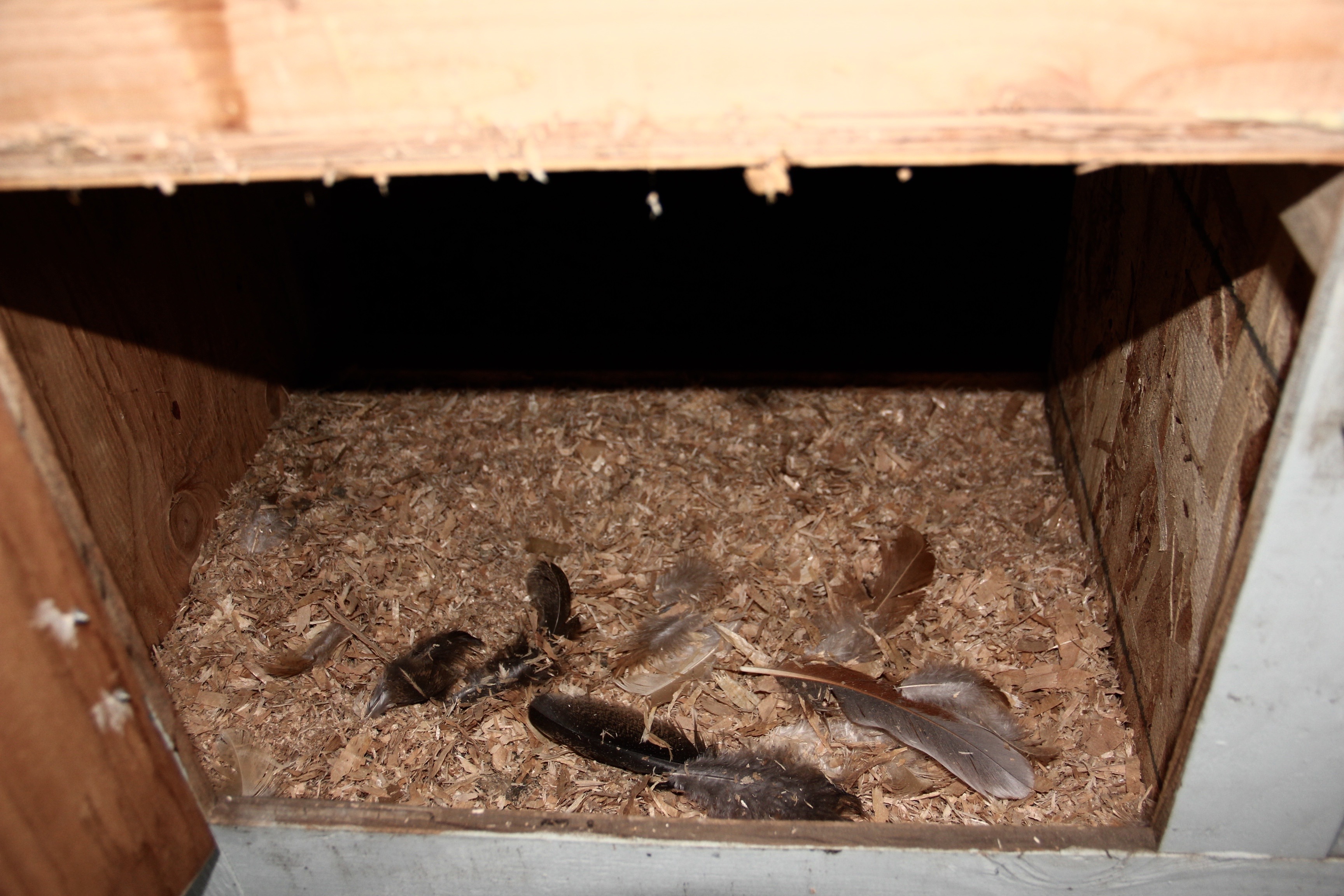 It started in earnest in September with a few dropped feathers. Some days, the area around the Chicken Mansion looked like feather pillows had exploded.