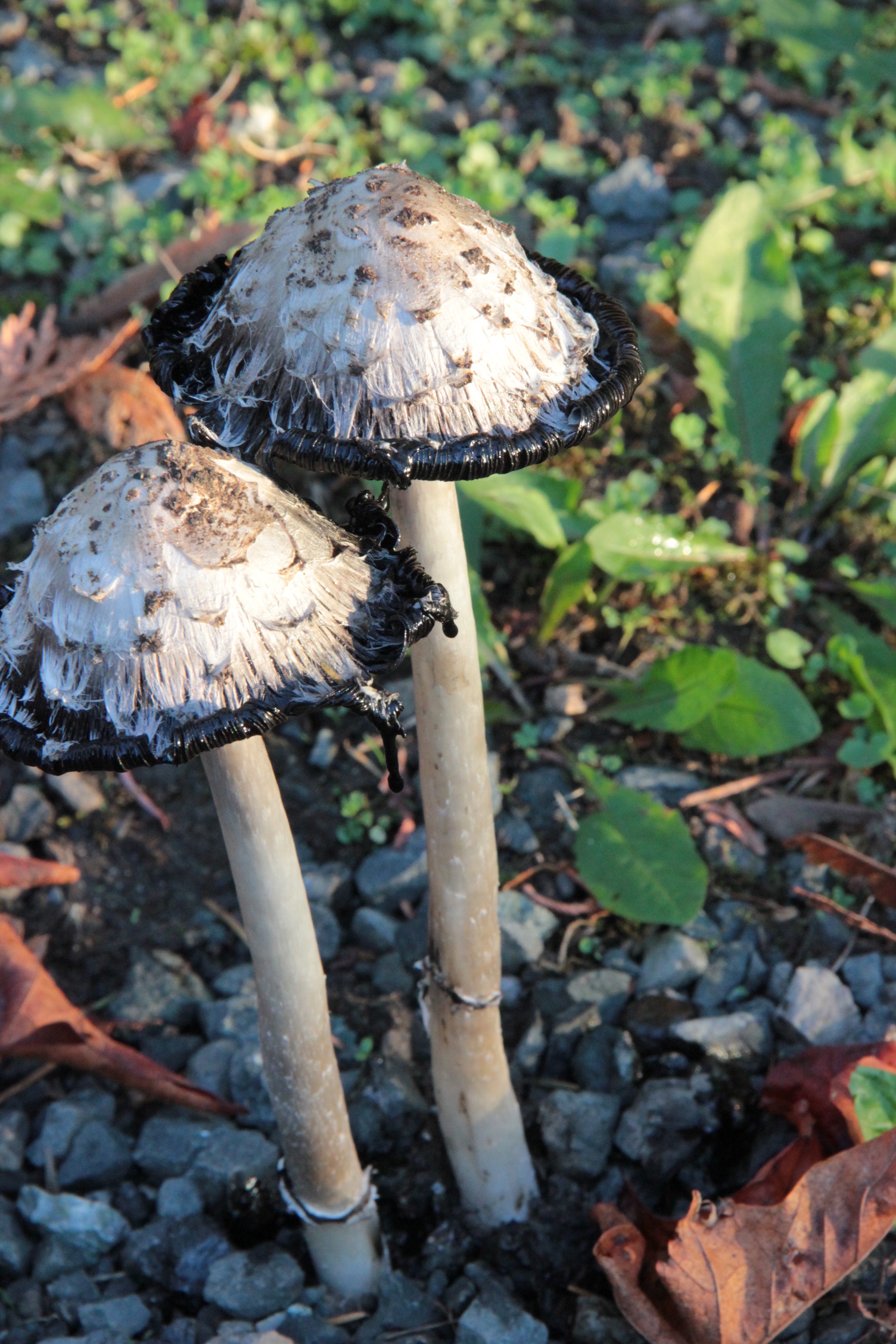 - Finding more shaggy mane mushrooms along driveway and near our pond. If not picked promptly, they decay turning black with spores from the bottom up. Thus their other name: shaggy ink cap! early October