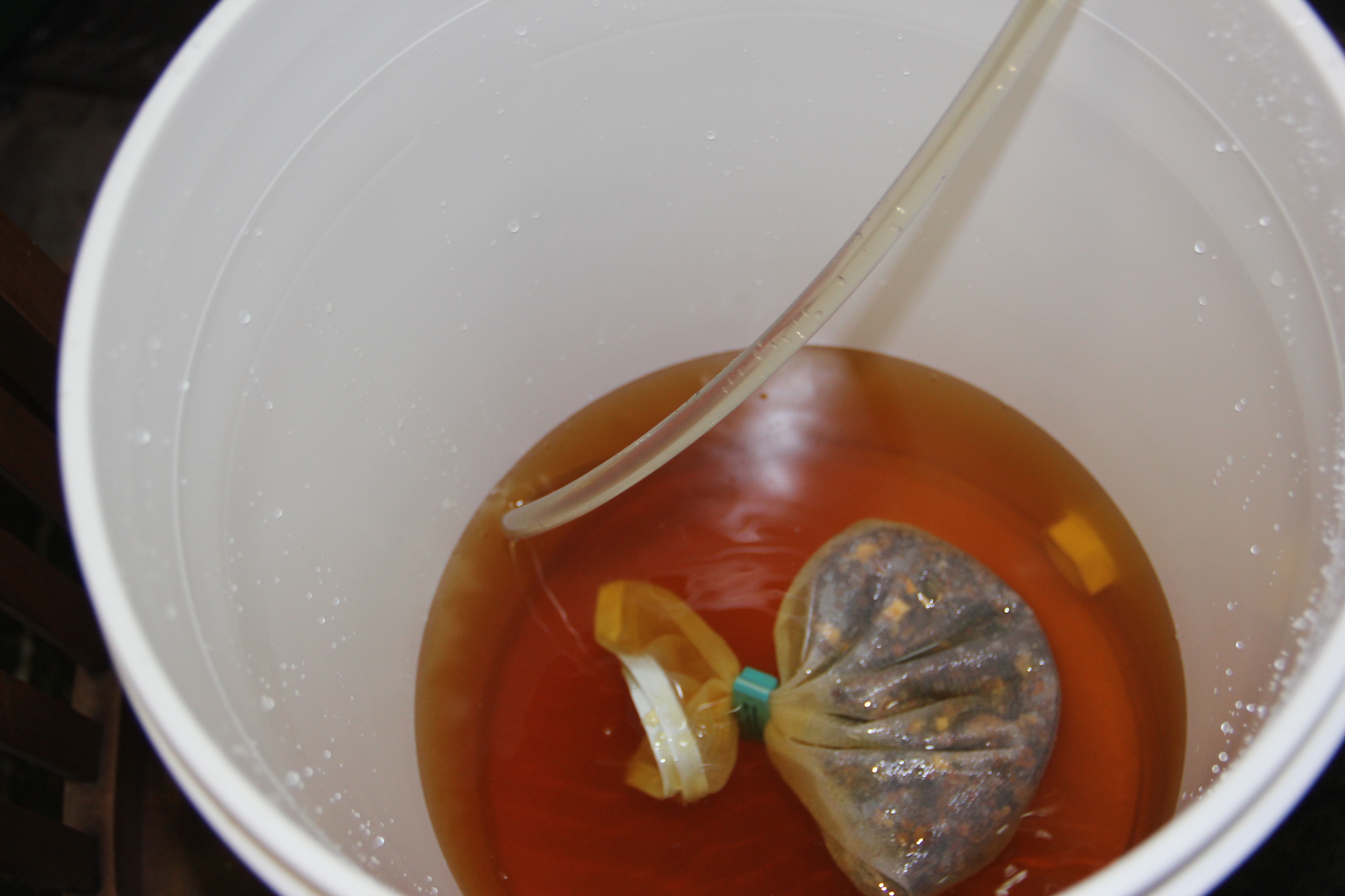 About a month after adding yeast and over a week after the bubbling ceased, we transferred the clear cider into clean buckets. This transfer took place after a tasting, of course. The beverage was still very apple-y, but was a bit too dry since the yeast had eaten all the fruit sugar. Both buckets seemed to have similar alcohol content, but this was difficult to confirm since Hubby’s still a novice at using a hydrometer.