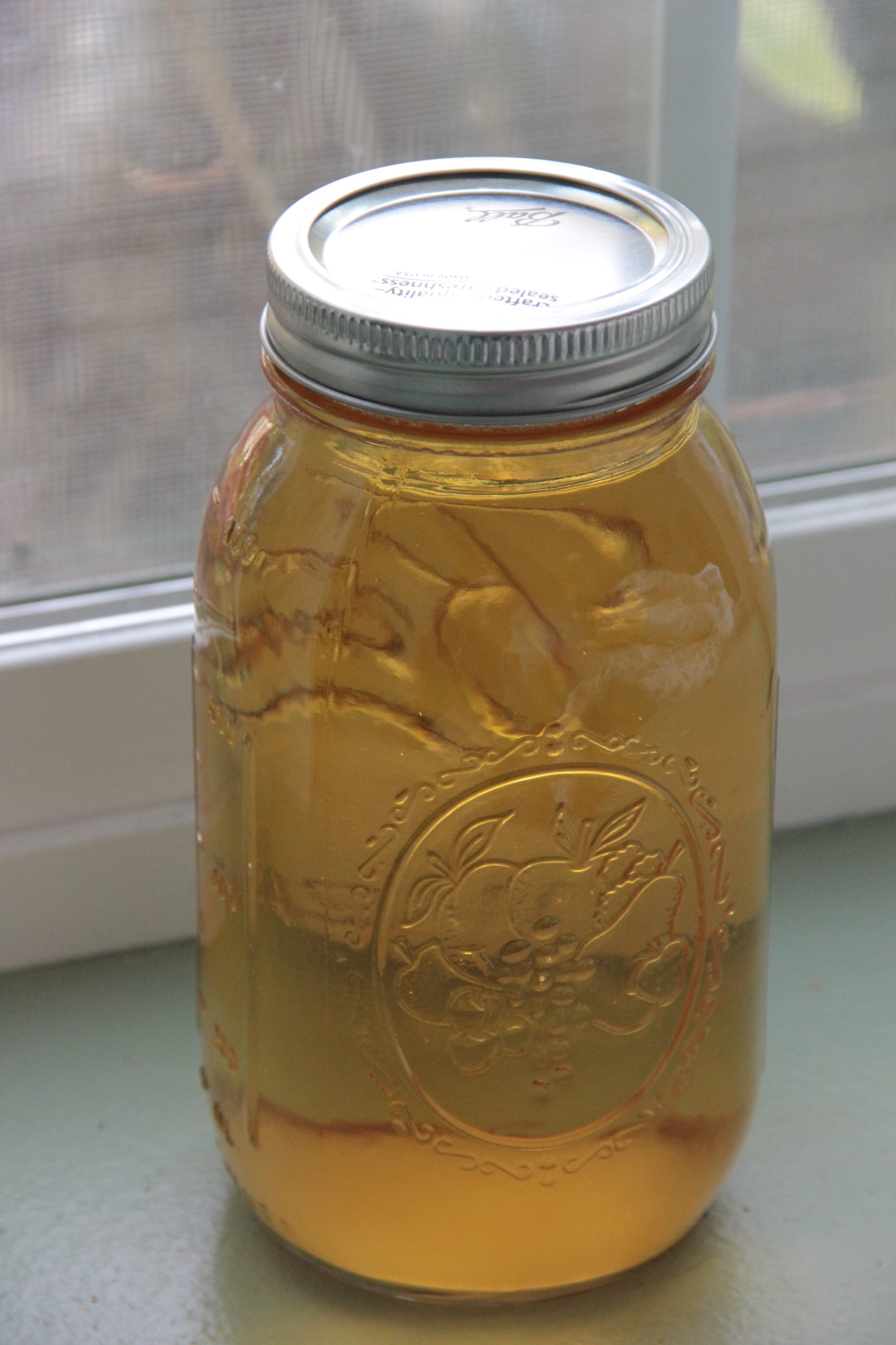 The waiting is not fun. In my opinion, the cider is delicious now, but Hubby has been pretty stingy, pouring us small glasses now and then, wanting to allow the majority of it to develop in flavor. I know he’s glad I’m not as stingy with the many batches of apple crisp in our freezer! So, we’ve drunk about three quarts so far and are loving Coppertop cider. If I were a cider critic I would write of its bouquet and mouthfeel, using words like “a beefy blend with a lush nose” but I simply know it’s good stuff. It’s plenty apple-y, sweet-ish and refreshing. The spices and honey helped transform this brew into a delicious nectar. Cheers!
