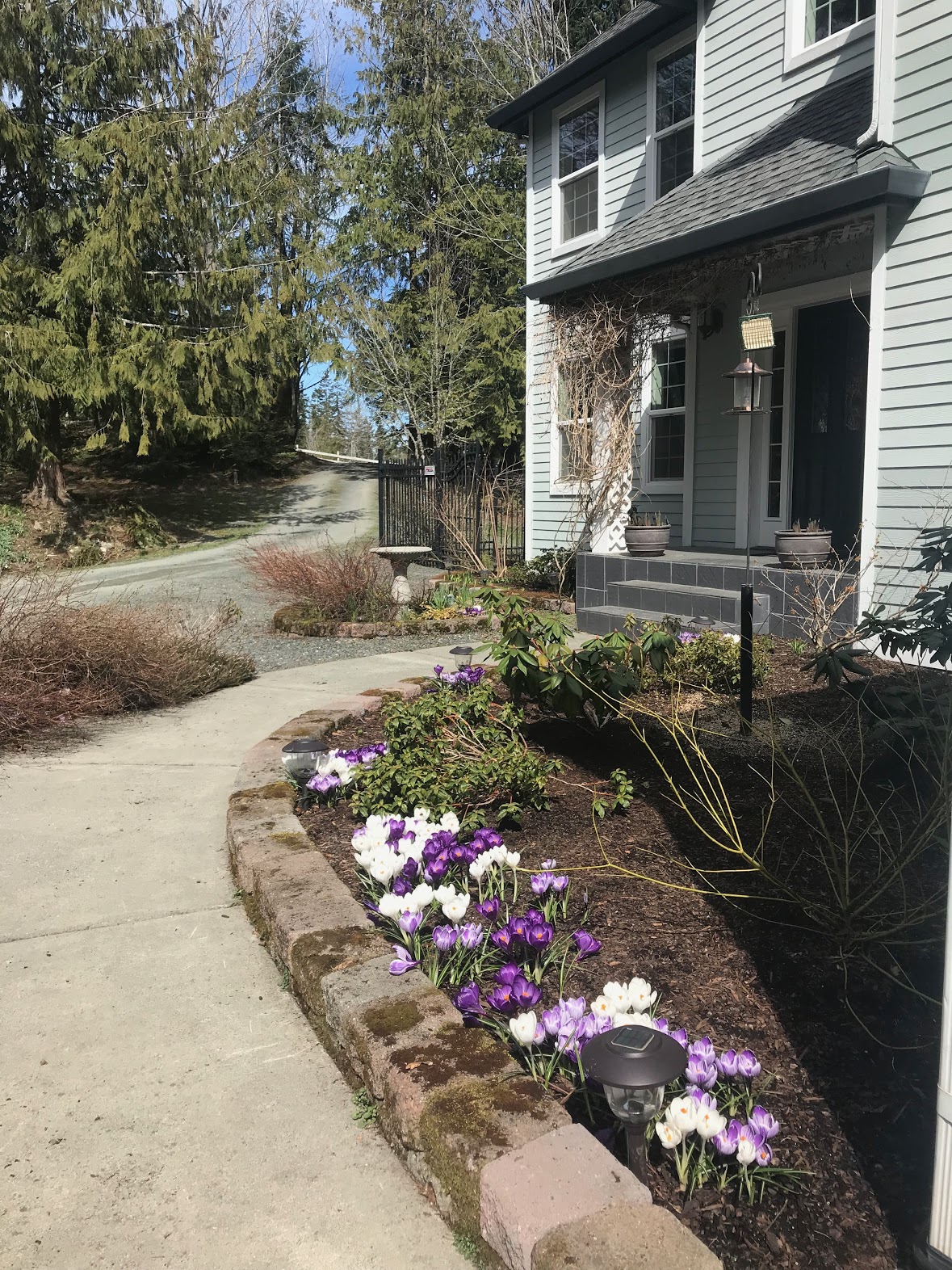 Snowdrops have just about finished, crocuses are still going strong, and not one daffodil has opened yet. We’ll be waiting until partway through April for hyacinths and tulips.