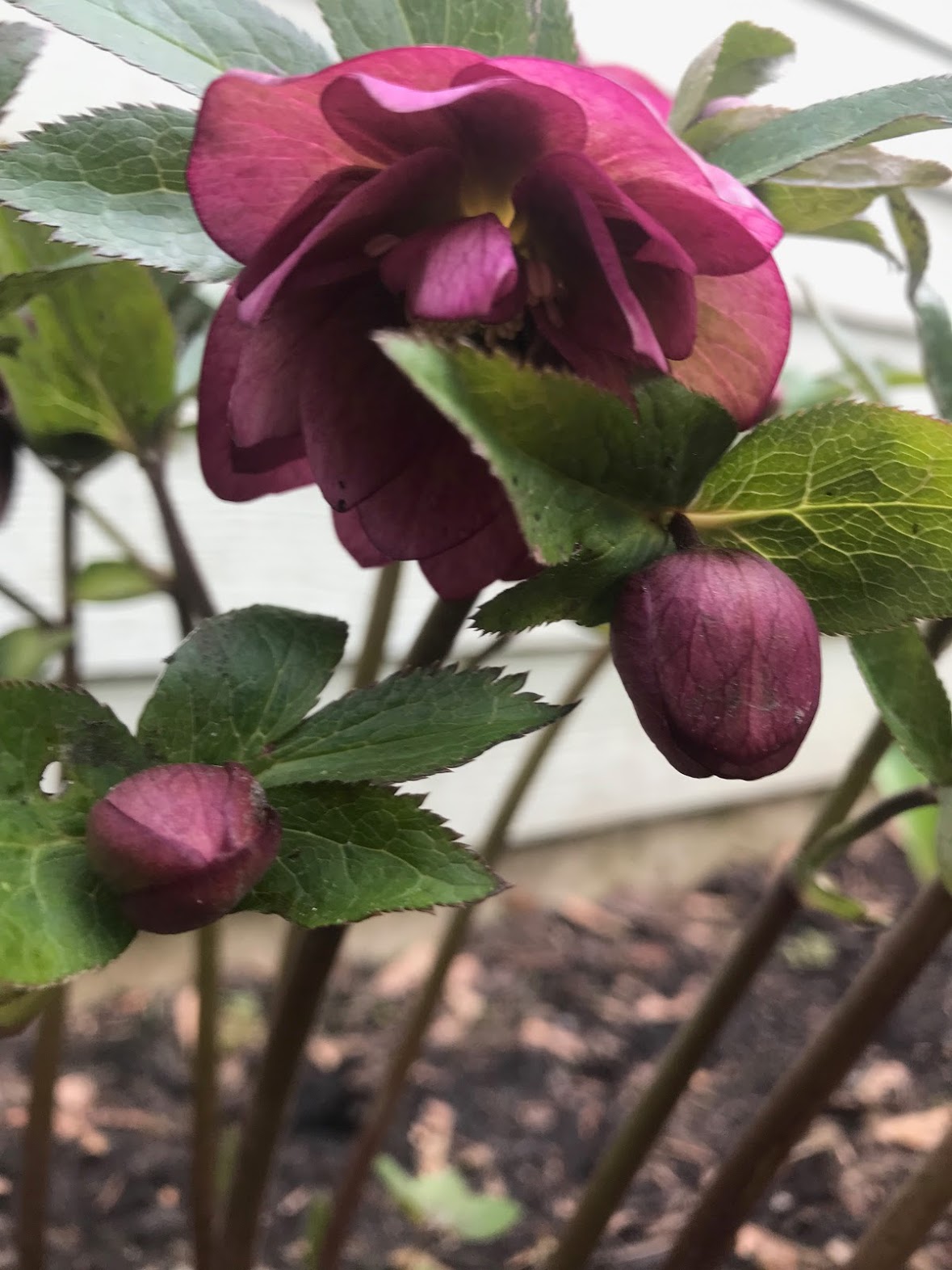 Half of my dozen varieties of hellebores have bloomed. Some may look a little worse for wear because of the many feet of snow that held them down for so long.