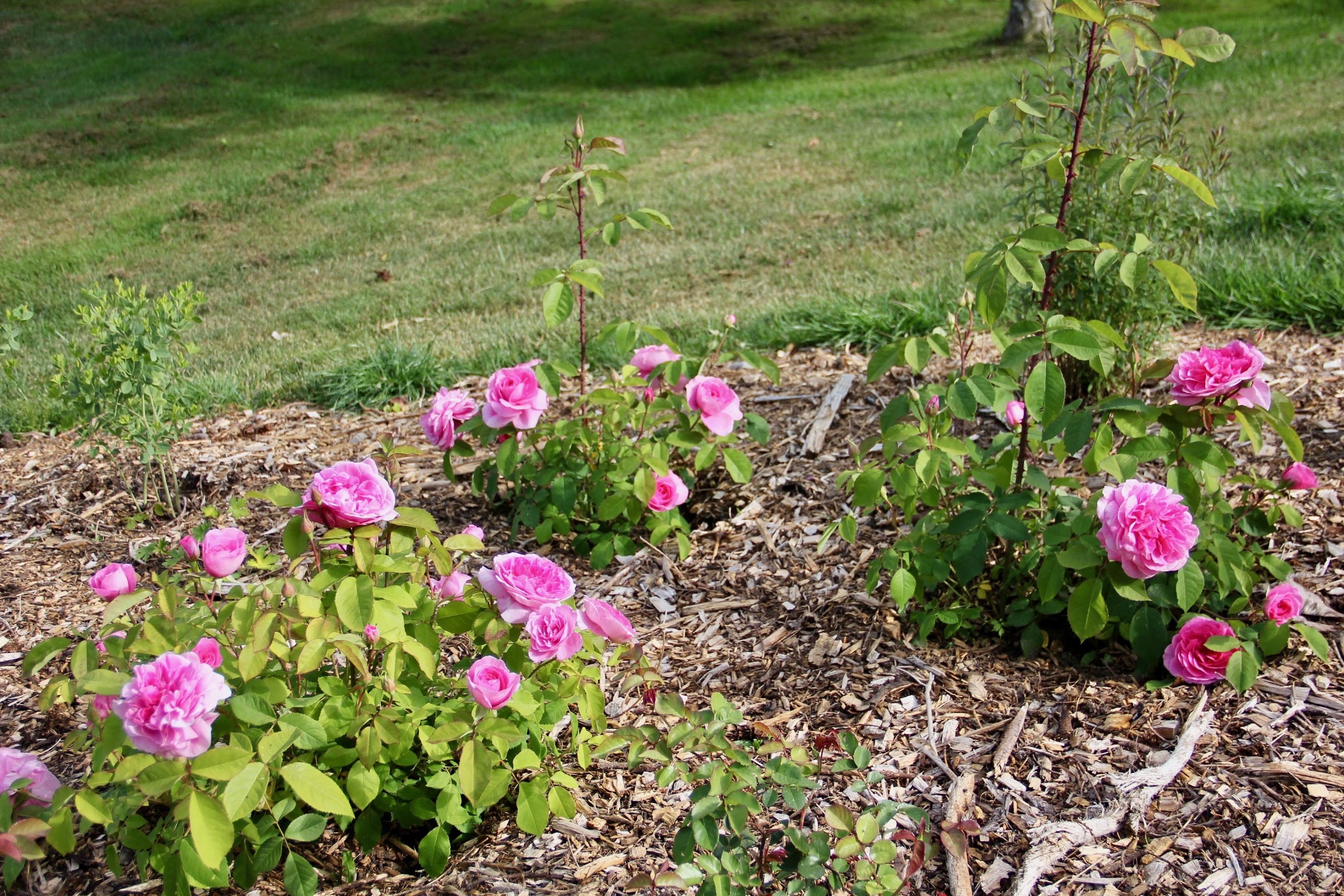 Only a month into bloom time, deadheading has begun in earnest. Each rose was planted with a healthy dose of compost and bone meal, and all have been fed with Espoma’s organic RoseTone. I’ll feed again when their first flush is over, probably with fish emulsion. In the winter I did protect the young bushes that were already planted with a heap of mulch, almost covering them, then dug them out as the snow melted and temps rose. I pruned very lightly in late March. Staying on top of weeding hasn’t been difficult yet, but I’m amazed dandelions survived all the turf removal and soil disruption to poke through layers of compost and mulch! Their fortitude is to be admired. So far there are no signs of blackspot or aphids, but I inspect daily.