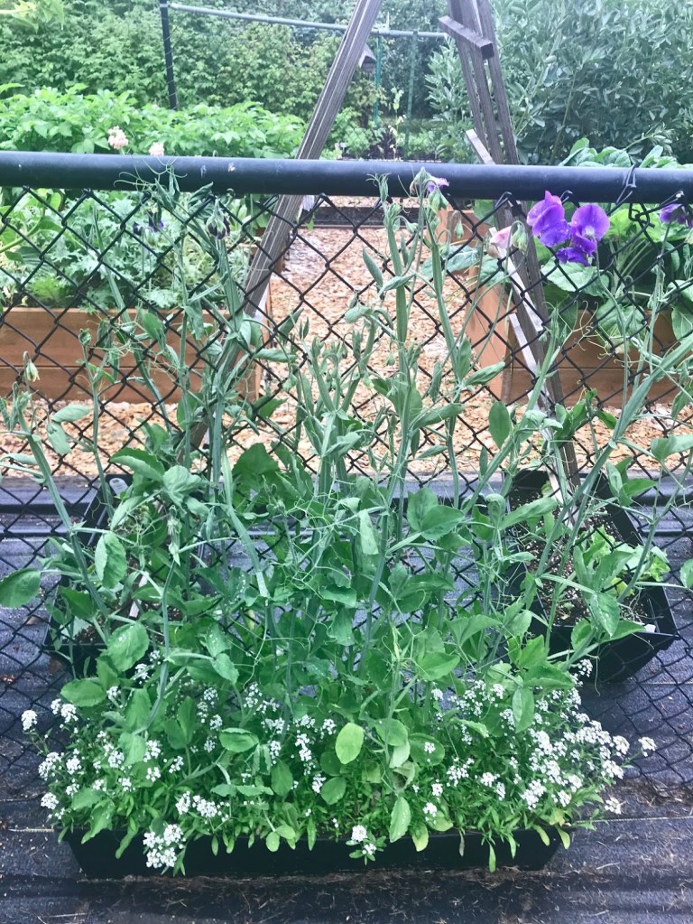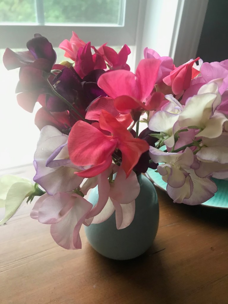 ONE – Sweet peas are like their edible legume family members in how they appreciate the recent cool temps. Blooms on a few varieties that I grow up trellises all over Coppertop began in the past few weeks, but are really starting to take off now. Their perfume is unbeatable! King’s High Scent with the lavender edge continues to be the most fragrant.