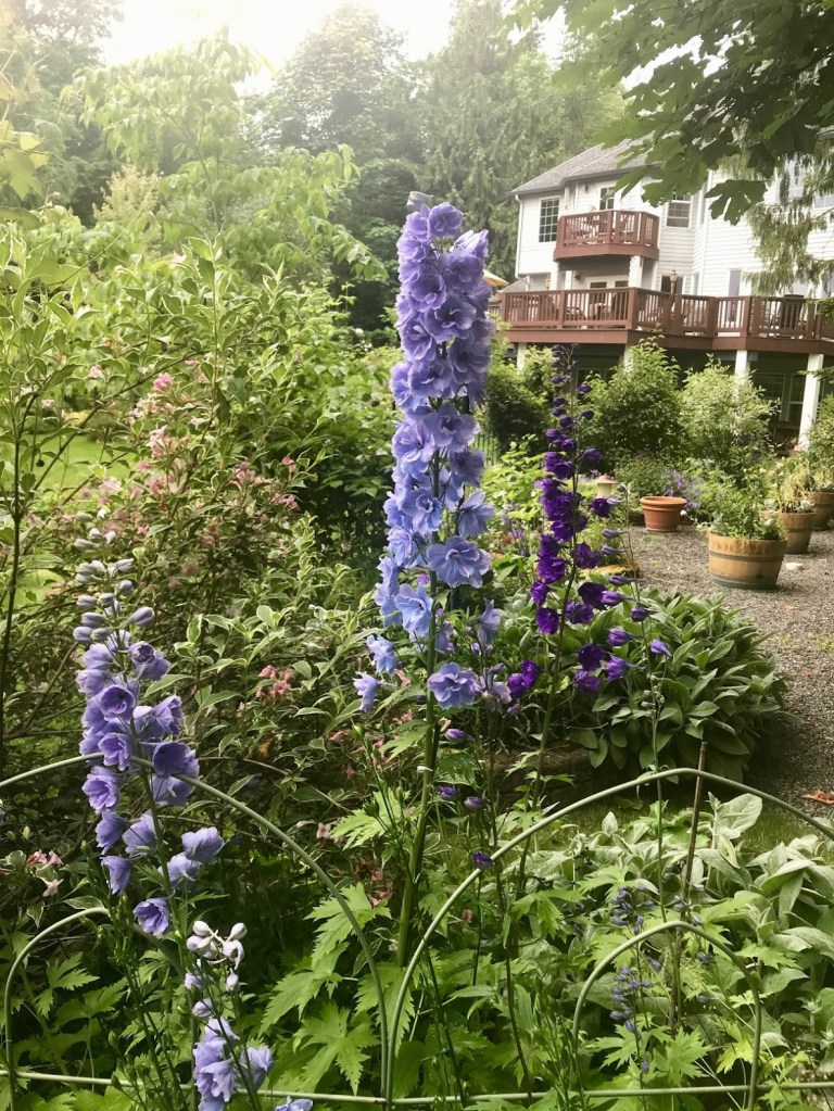 FOUR – Delphiniums signal the 4th of July here at Coppertop, and I can count on them blooming for the holiday. The blues are at their best.
