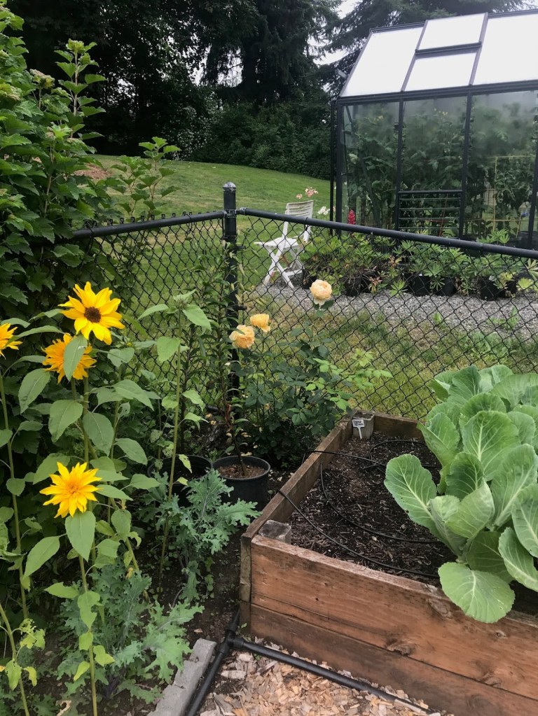 July flew past, with loads of beauty and production in the garden. Here in the Pacific Northwest, we even reached 85F a couple of times, but now we’re back to our comfortable, summery low 70s.