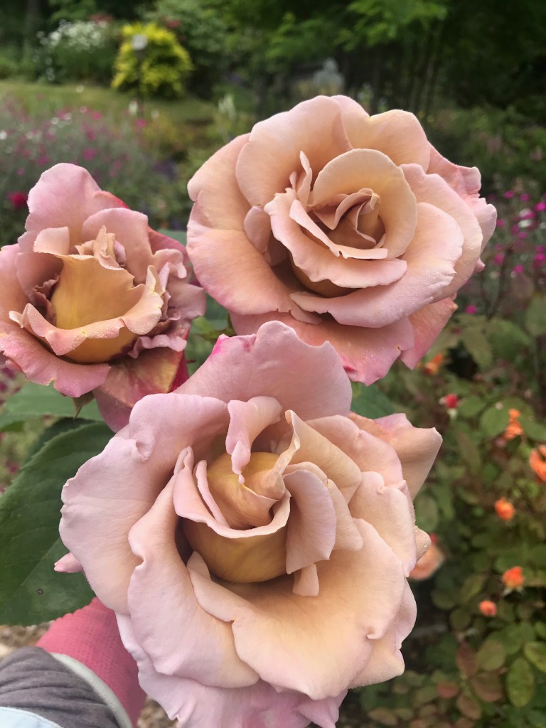 THREE – Roses are beyond beautiful throughout the summer in my young rose garden. This one stem is from a spectacular floribunda called Connie’s Sandstorm.
