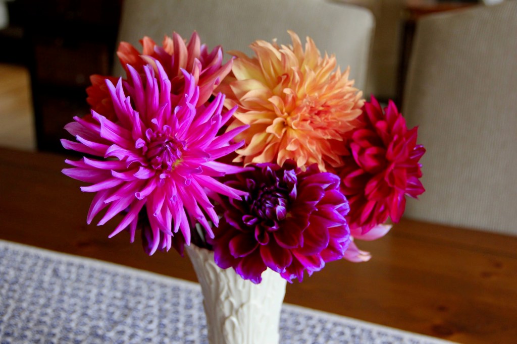 SIX – So, I’ll start and end with dahlias. This bronzy bloom is an early one here, ‘Bonaventure.’ I’m a sucker for her delicately-shaded, wavy edges.