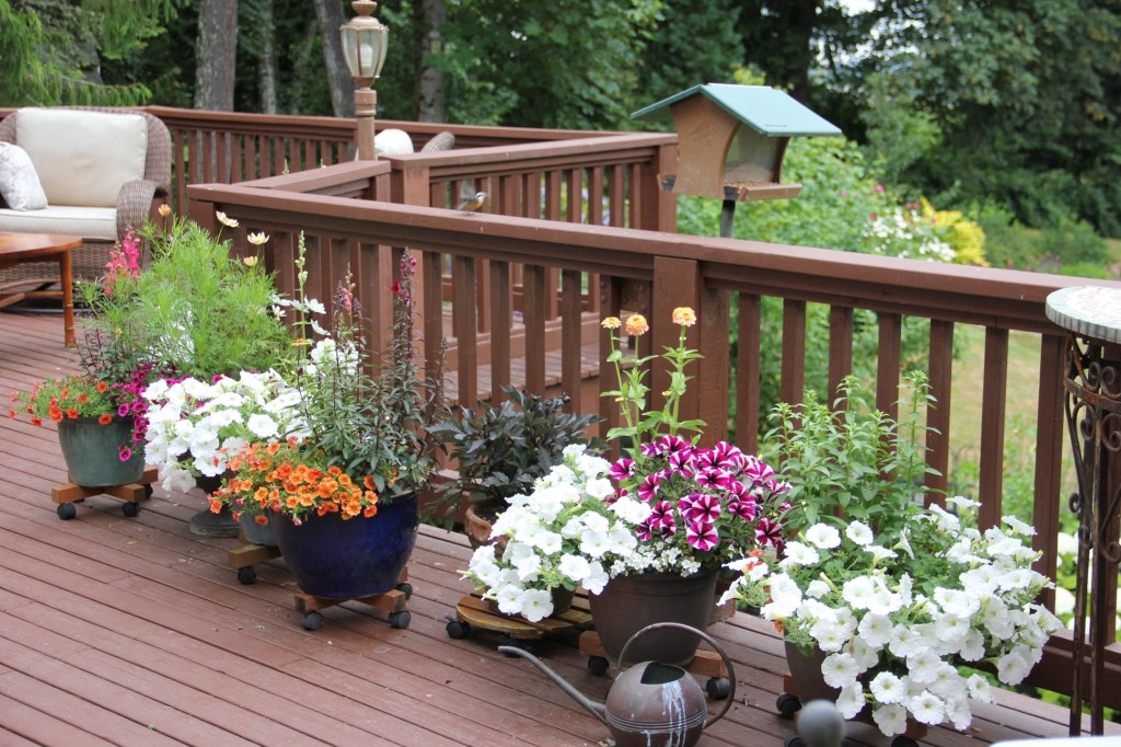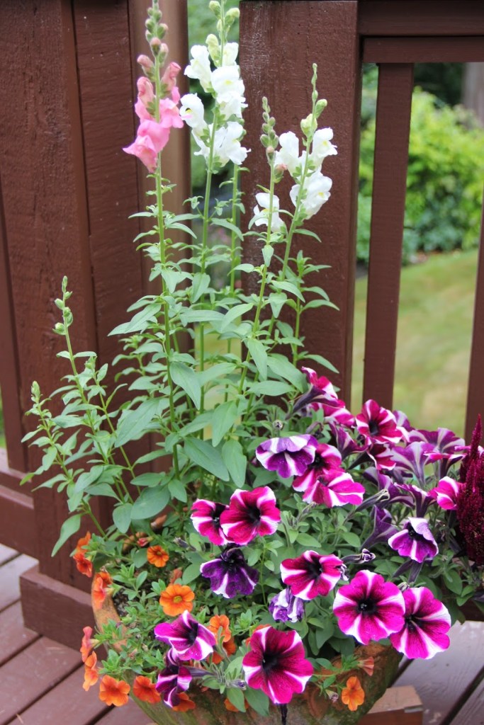 FOUR – Some annuals I started from seed were less than spectacular this year. I count on annuals to grace the deck in pots. I had to actually purchase starts (ugh!) of petunias and calibrachoa, which have now filled in nicely. At least the snapdragons, zinnias, and cosmos I started made a showing.
