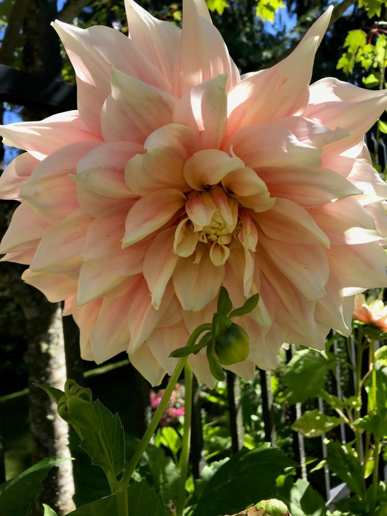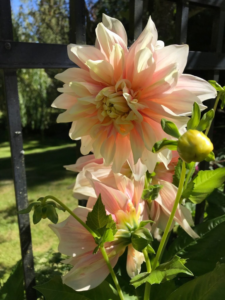Today I’m sharing one of my favorite dahlias that blooms from August through October, ‘Breakout’. Her tones change during the season and in varying light from peachy pink to pale gold. She brings a big smile to my face. My followers know I grow almost 60 varieties of dahlias (well over 150 tubers), but ‘Breakout’ is given a generous patch in my garden because of her beauty.
