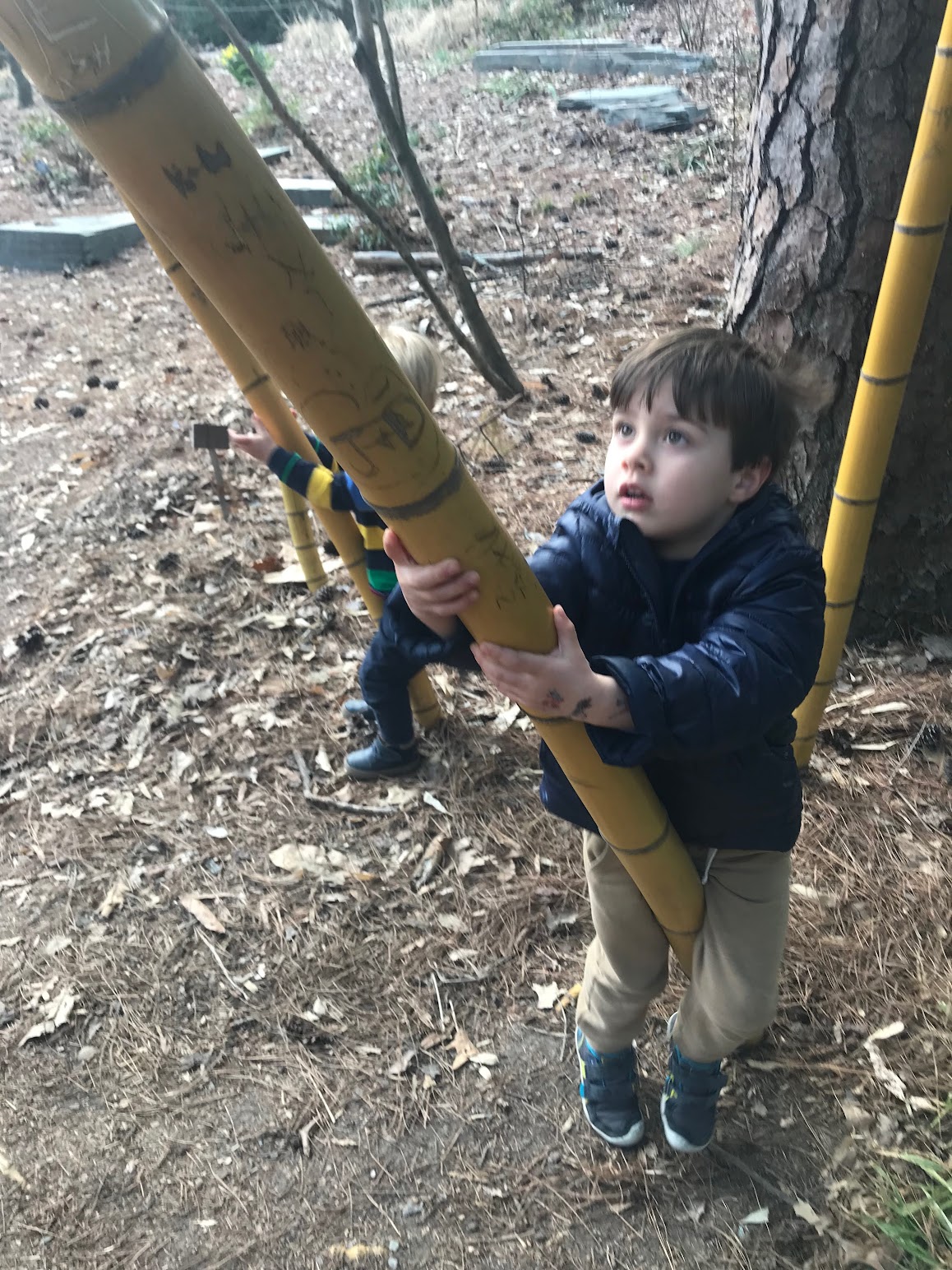 SIX – I recently returned from the final leg of my trip visiting North Carolina. My eldest daughter’s family is living there for one year while completing another round of studies. The Duke University Gardens were gorgeous even in winter, with highly-fragrant Edgeworthia chrysantha shrubs throughout, bridges over water features, a stellar children’s garden, and a bamboo forest for climbing grandsons.