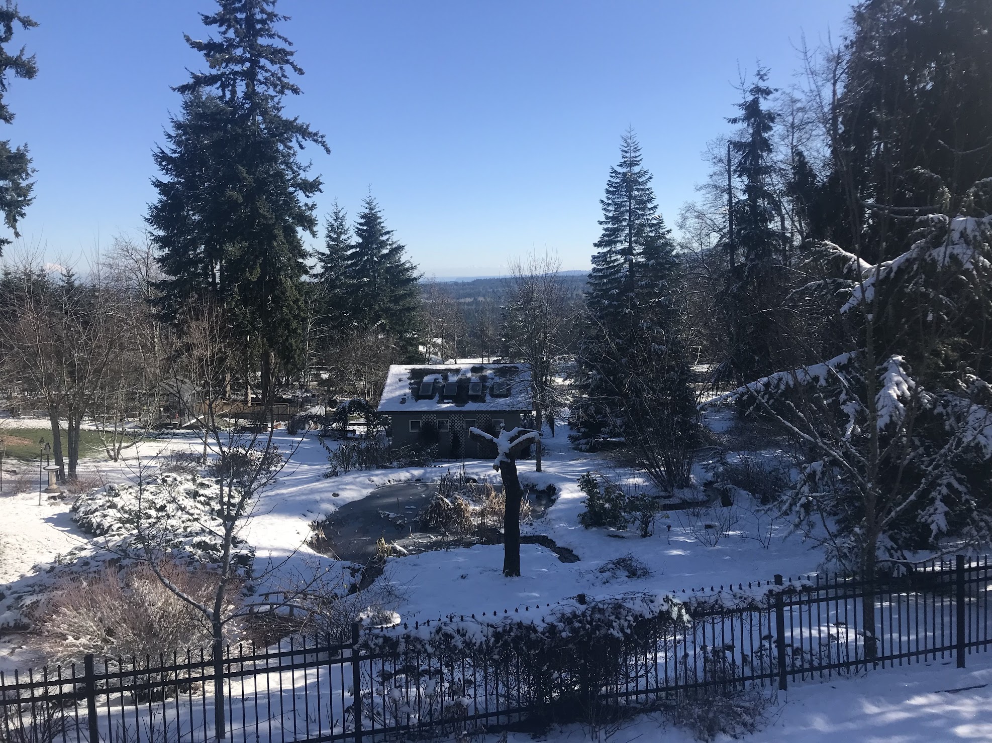 ONE – Winter 2021-22 has brought some snow to the Pacific Northwest, mostly around the holidays. Right now about half an inch of snow blankets the shady parts of Coppertop. This weekend’s warming trend should put an end to that. At the turn of the new year and today: