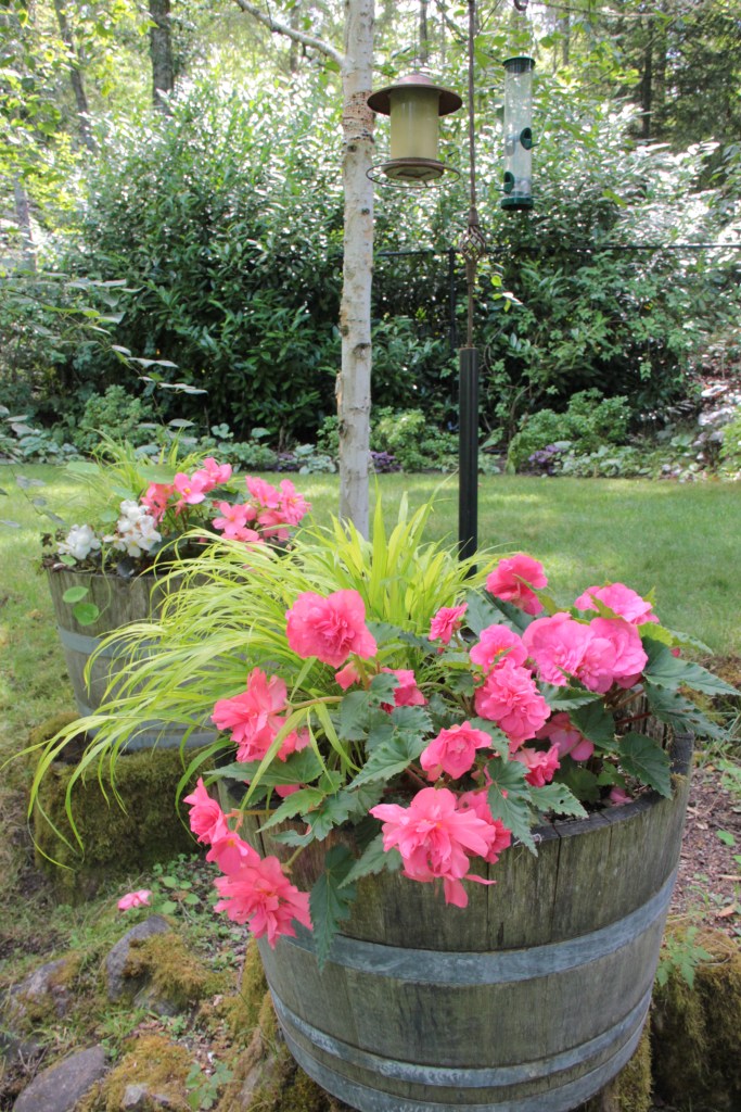 As August closes, the shady wine barrels thrive with their mix of begonias and hakonechloa. Dahlia season has just begun here and will continue until first frost. It’s been a lovely summer!