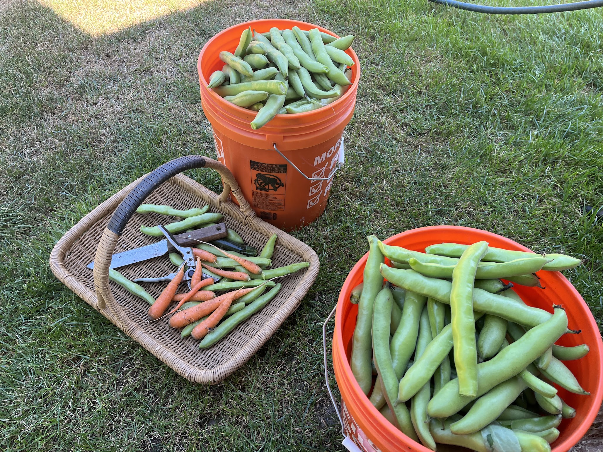 July started with even more roses and ripe vegetables. The first carrots were pulled (with hundreds more to come), the first sweet peas bloomed, and the fava bean harvest was abundant. The perennial garden wine barrels overflowed with nasturtiums.