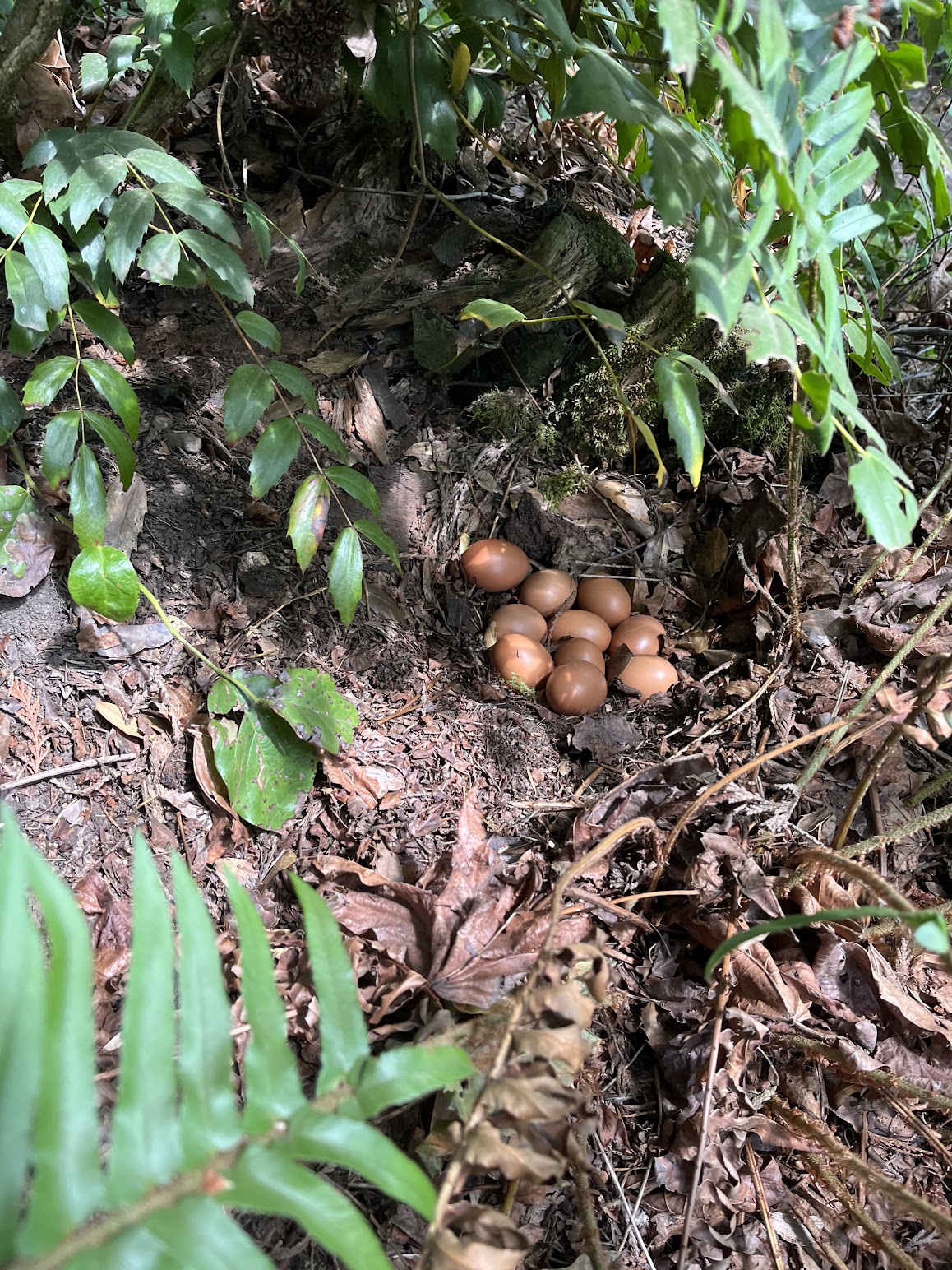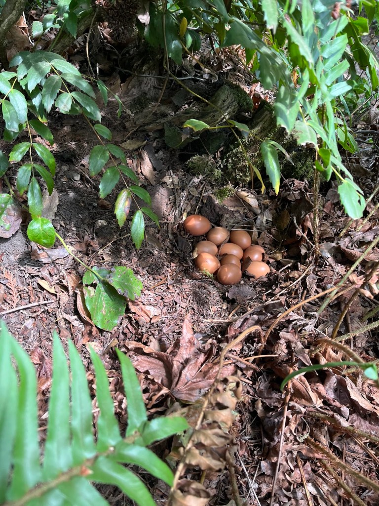 Fruity and veggie abundance has been matched by the number of eggs our hens are producing. Wow! One young hen persistently found a way around the fence and netting we protect them with, and I often found her wandering the garden. Then I would guide her back through the gate. Last week I was able to catch her in the laying act — and discovered almost a dozen beautiful gifts beneath the shady ferns. We appreciate our chickens (and bake a LOT of quiche).